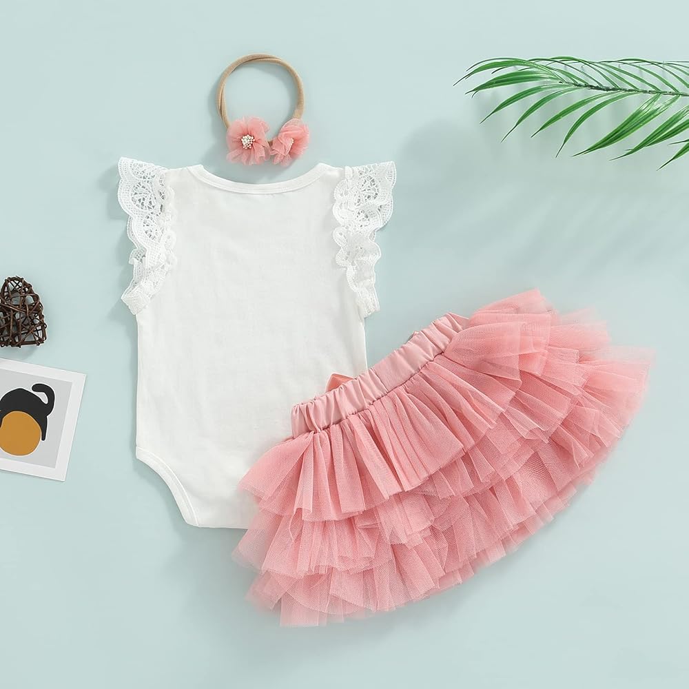 Biayxms Baby Girl First Birthday Outfit One Fly Sleeve Romper and Tutu Skirts Set with Headband Baby My 1st Birthday Clothes