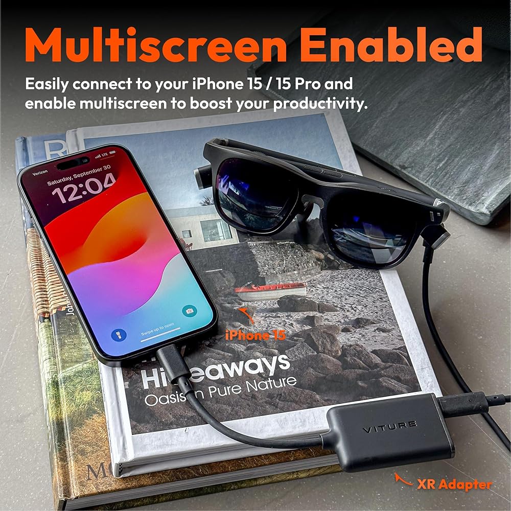 【The First & Only XR Experience On iPhone】 While the XR Glasses already work with iPhone 15 directly, you can enjoy the full XR experience with our new USB-C XR Charging Adapter, unlocking enhanced 3DoF, VR features, and multiscreen support on iPhone 15/15 Pro! Also keep your phone charged too!