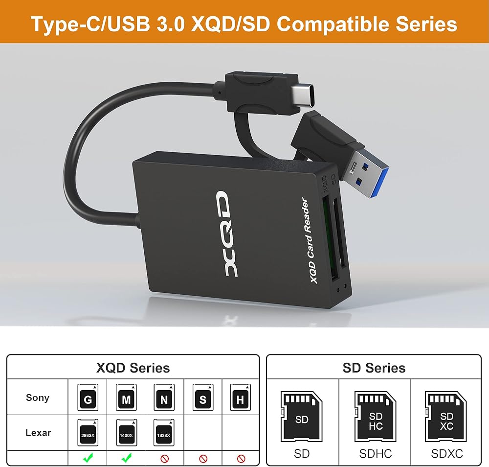 【Wide Compatibility】 For professional equipment such as Nikon D4/D5/D500 and other cameras with XQD cards, perfectly for XQD Sony G-series and M-series card, Lexar 2933x, Lexar1400x Mark cards, SD /SDHC/SDXC Series. Max capacity for XQD and SD card is 2TB. Compatible with Windows/Mac OS systems and smartphone with USB C interface. Note: Do not support XQD N, S, H series.