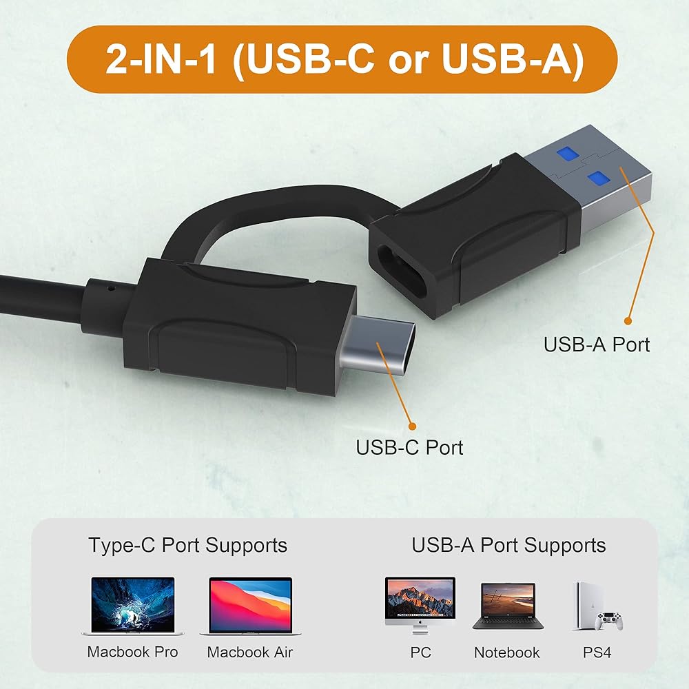 【نقل فائق السرعة بسرعة 5 جيجابايت في الثانية】يوفر تصميم موصل USB C وUSB3.0 وصولاً أكثر كفاءة إلى أجهزة الكمبيوتر المحمولة والأجهزة اللوحية والهواتف عن طريق فتحة USB-A أو USB-C. قم بالتوصيل للتشغيل، وسهل التشغيل ولا حاجة إلى برنامج تشغيل إضافي. أقصى سرعة نقل تصل إلى 5 جيجابت في الثانية، أسرع 10 مرات من بروتوكول USB 2.0 التقليدي، مما يسرع سرعة المشاركة ويسمح لك بالمشاركة في أي وقت!