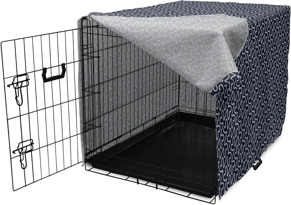 Lunarable Blue Nautical Dog Crate Cover, Marine Love Themed Pattern of Romantic Sailor as Heart Shape, Easy to Use Pet Kennel Cover for Small Dogs Puppies Kittens, 18 Inch, Dark Violet Blue White