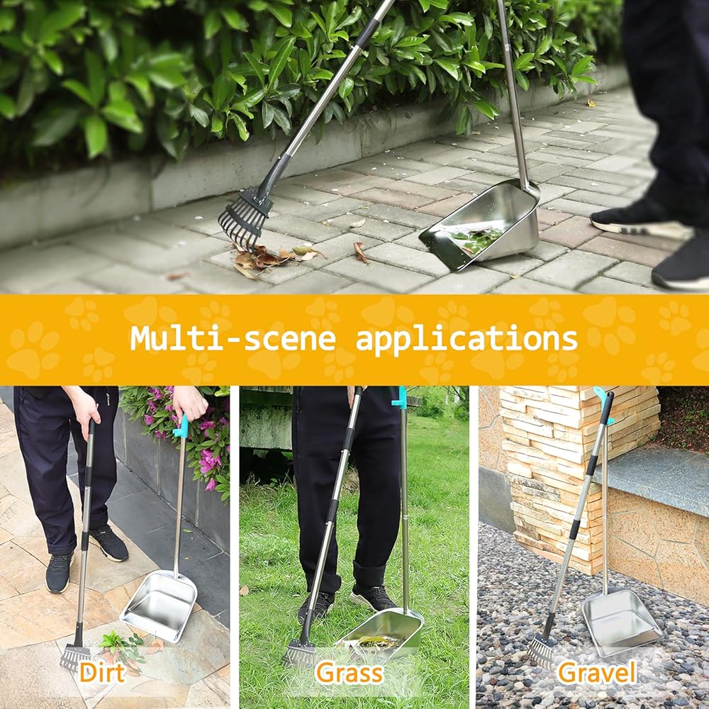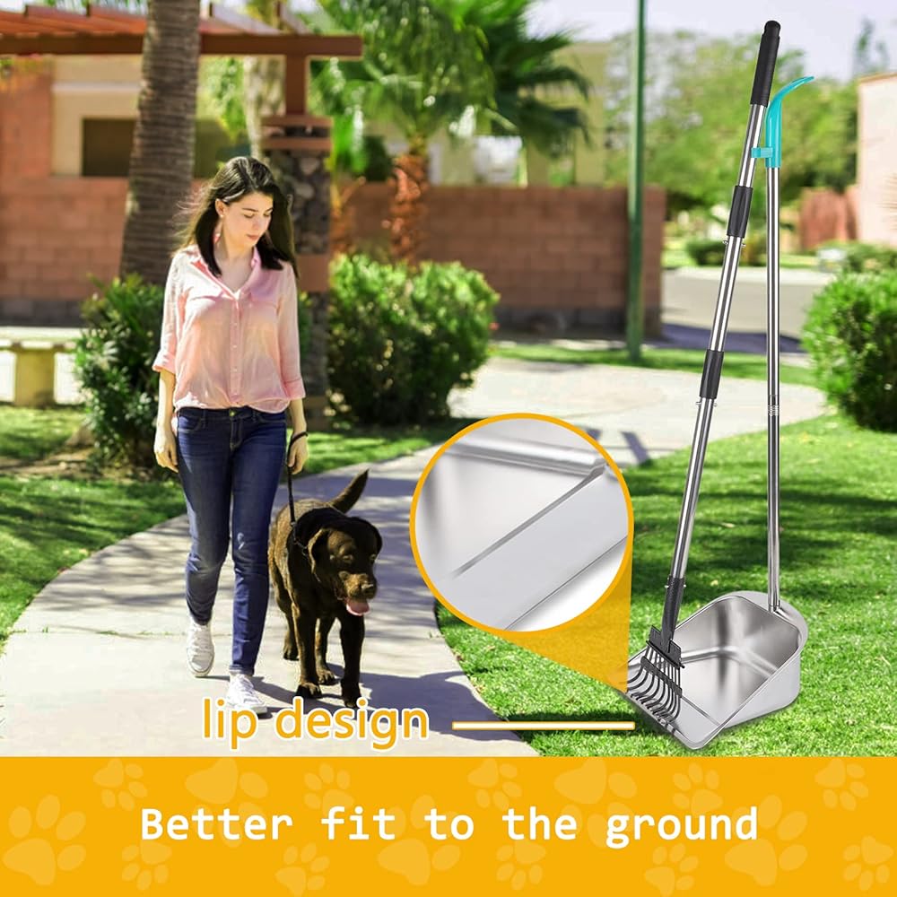 Dog Pooper Scooper for Large Dogs with 36" Long Handle,Metal Poop Scooper for Dogs-Stainless Steel Tray and Rake Set,Sturdy Dog Poop Scooper for Yard (304 Steel)