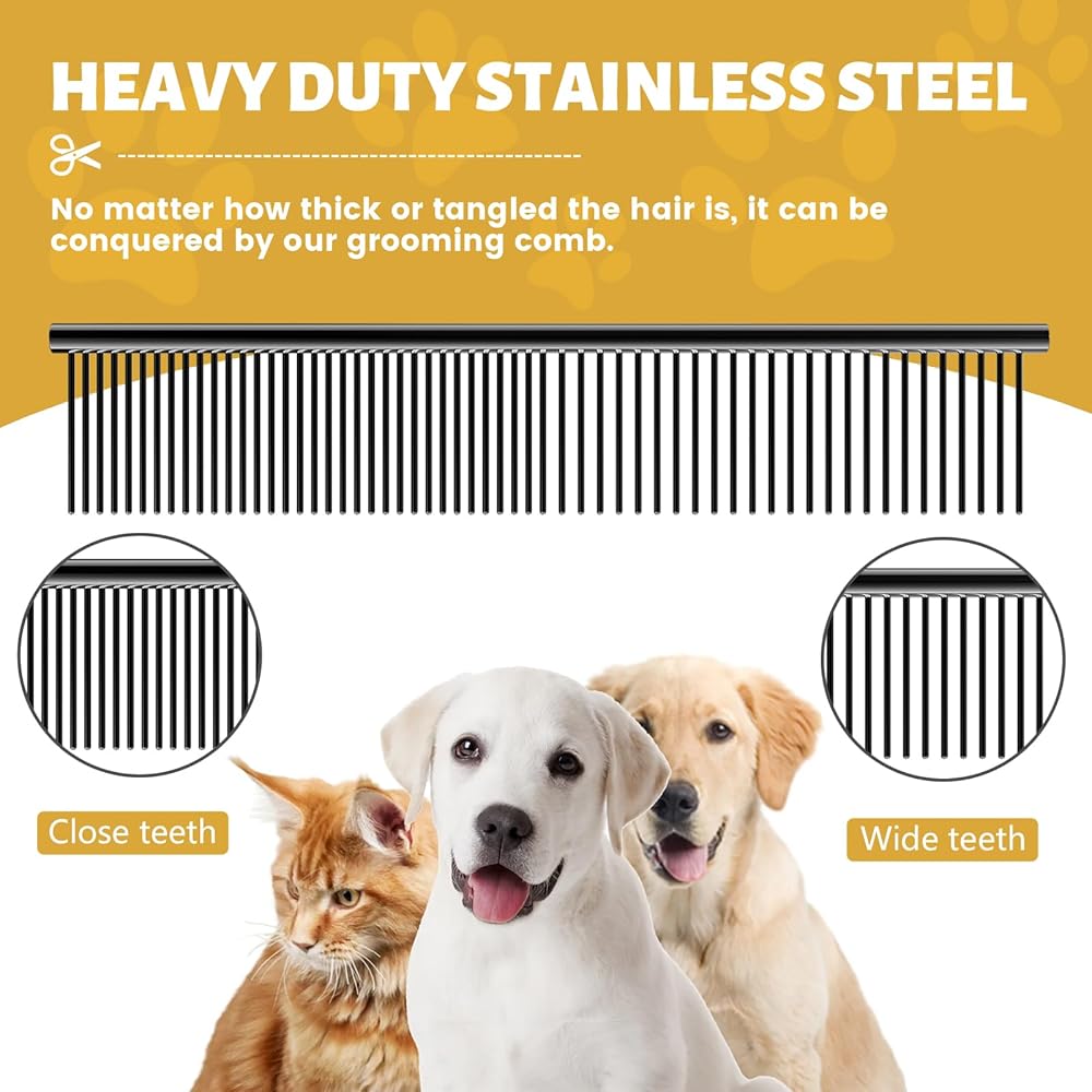 7-In-1 Dog Grooming Scissors Kit -- The dog grooming scissors kit comes with 2 straight scissors different lengths, 1 thinning scissor, 1 curved scissor, 1 grooming comb, 1 cleaning cloth and 1 storage case.