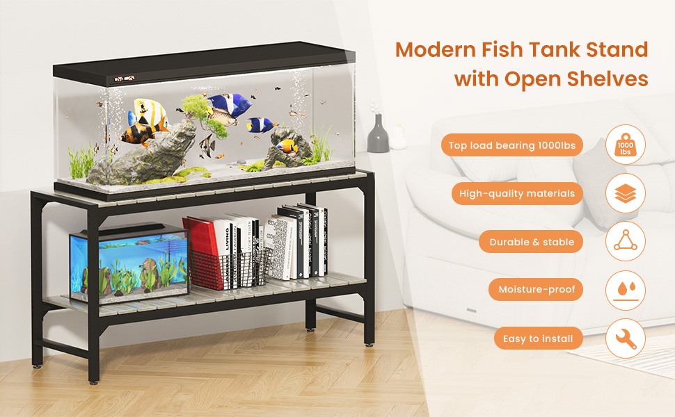 【Open Convenient Storage】The spacious shelves in the middle of the stand, which can hold up to 1000 lbs per shelf, can meet your needs for placing multiple fish tanks, and also allow you to store fish accessories: fish food, fishing nets, etc. Easily access what you need