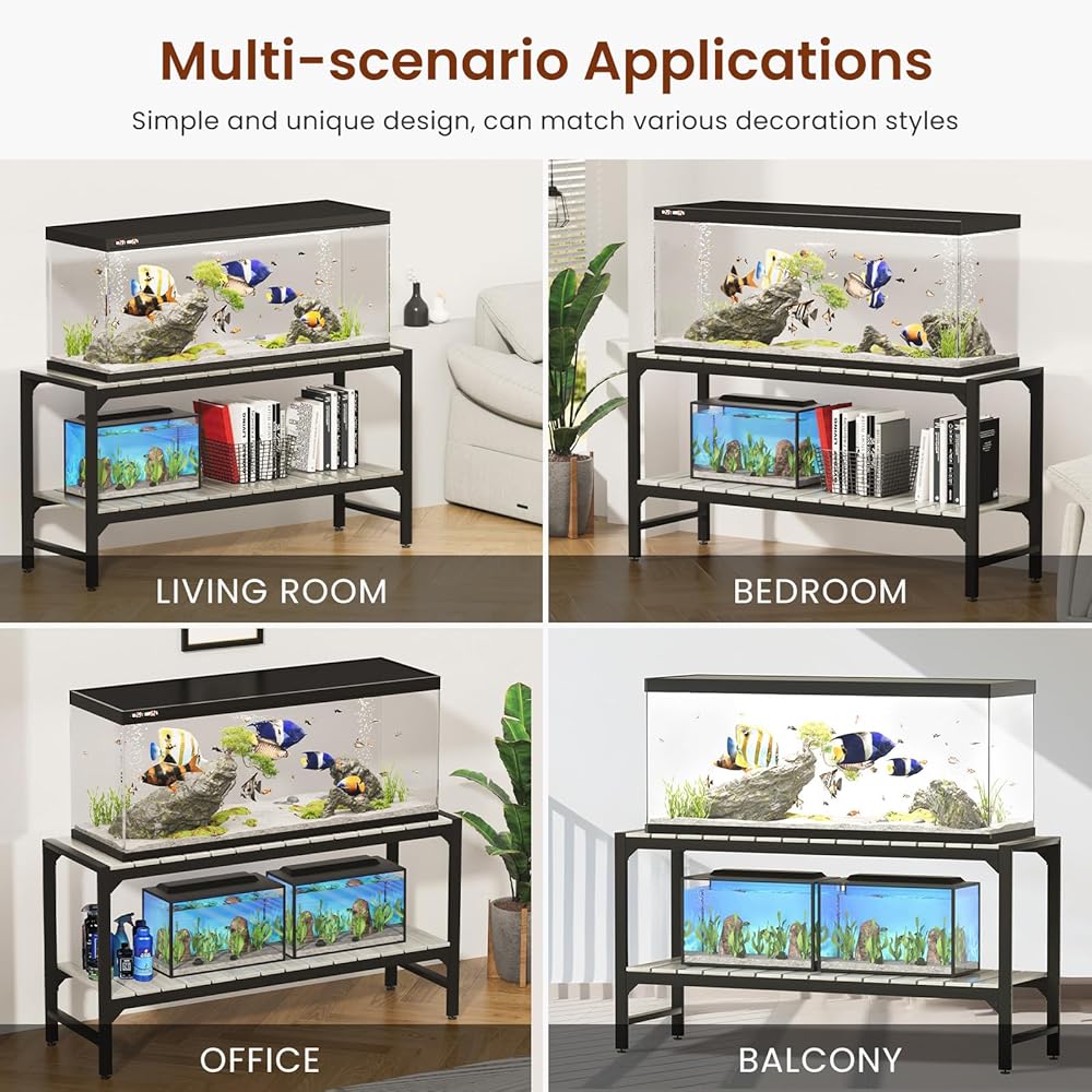 【Hold 3 to 6 Aquariums】It is suitable for aquariums or terrariums of most sizes. The top holds a 55-90 gallon tank, at the same time, the base frame can also accommodate an aquarium under 55 gallons. 10-30 gal fish tanks can be placed 2 per layer, 5-10 gal fish tanks can be placed 3 per layer