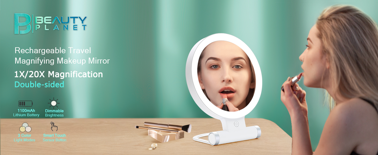 【 Powerful 20X Magnification】: This is a double-sided lighted travel mirror with a 20X magnified mirror on one side and the high-definition standard LED mirror on the other. The 20X travel magnifying mirror is powerful, you will find no more missing smudged eye makeup, unseen blemishes, stray hairs, or small specks between your teeth. This LED makeup mirror helps you make sure everything on your face is exactly how and where it should be. The regular side could display the entire face in high definition to meet your daily needs.