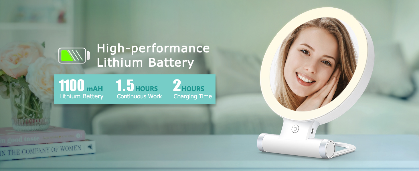 【 1100mAh Li-polymer Battery 】: The battery takes 2H to be fully charged,1.5H of strong light usage and 2.5H of weak light usage. It's USB charging, connect a laptop, charger, or mobile power supply via Type-C USB for charging, no worry about replacing batteries. It is very convenient for women's makeup and men's shaving.
