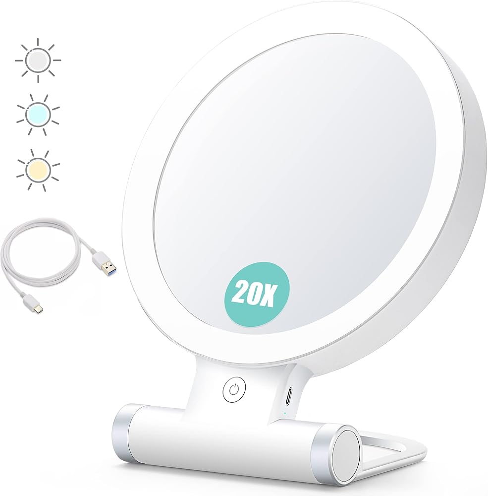 B Beauty Planet Magnifying Mirror with Light 20X/1X,Double Sided Tabletop Mirror with Adjustable Folding Handle,Cosmetic Mirror for Makeup/Travel, Tweezing, and Blackhead/Blemish Removal.