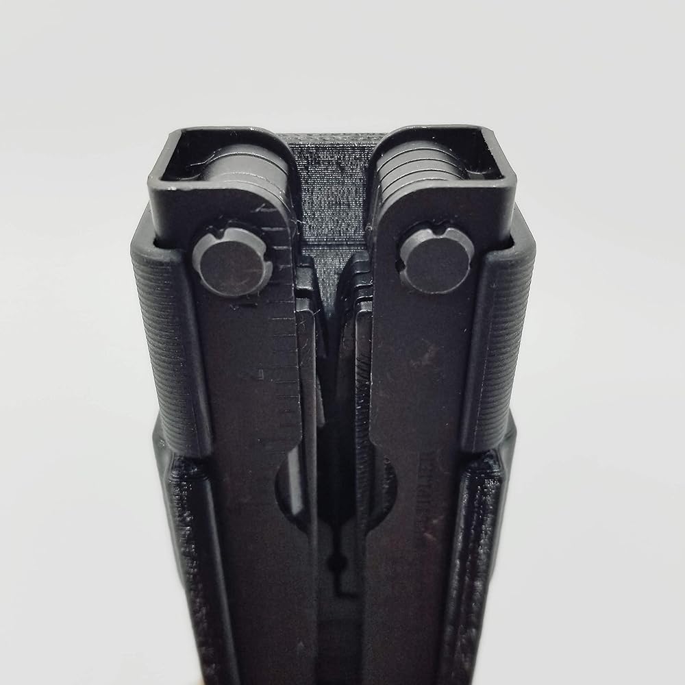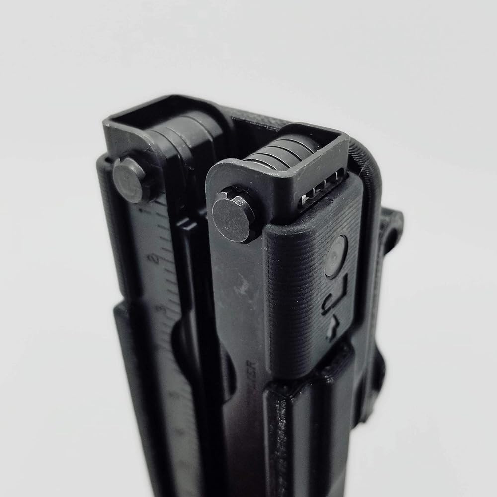 HoldMyGear 3D Printed Sheath. Compatible with the Gerber MP600 multi-tool. Tool clicks inside the case and holds securely. The tool can be inserted in either direction and can be easily removed with one hand by pushing the tool up from the bottom. 1.5" belt clip can be rotated for vertical or horizontal carry. Two mounting holes allow two height adjustments with stock belt clip or can be used with many aftermarket belt or molle attachment systems. Made with durable thermoplastic. Tool not included.