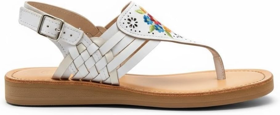 Handmade sandal with genuine leather, vegetable-based dyes, and plastic soles. Heel height 0.7 inches.