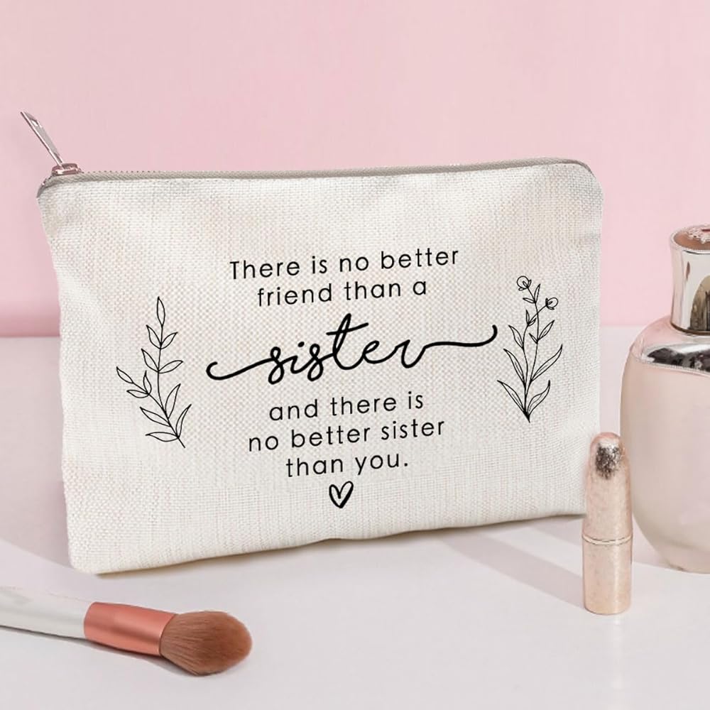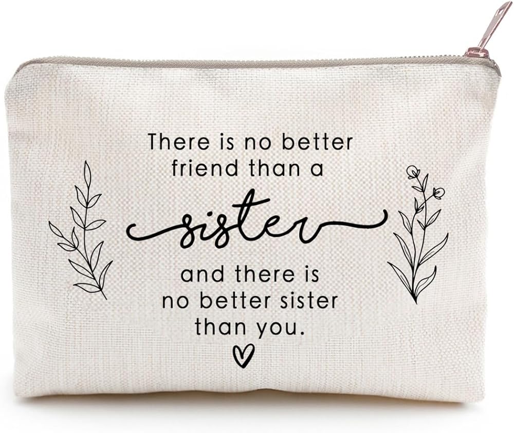Gift your sister the perfect travel companion - our 'No Better Friend Than A Sister' Makeup Case! Made from natural linen, this compact bag keeps her essentials organized with its secure zipper closure. Show your love with this thoughtful and stylish gift. Shop now!