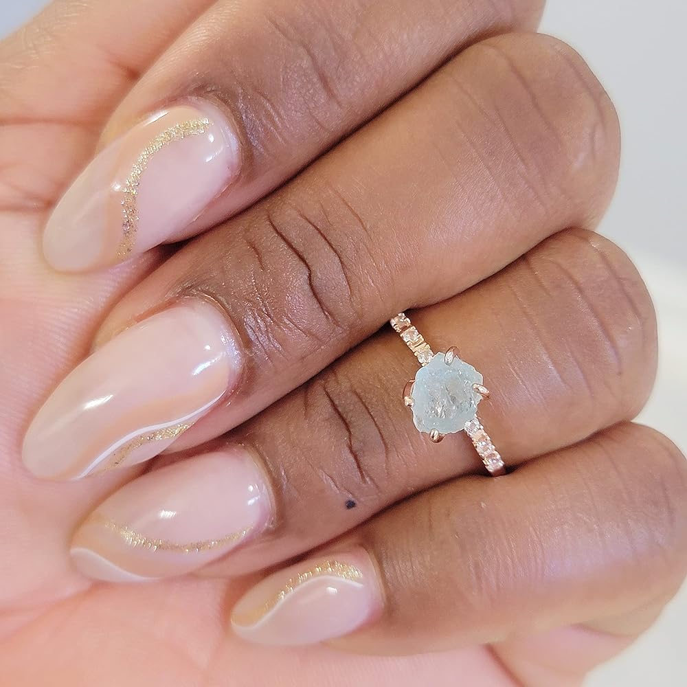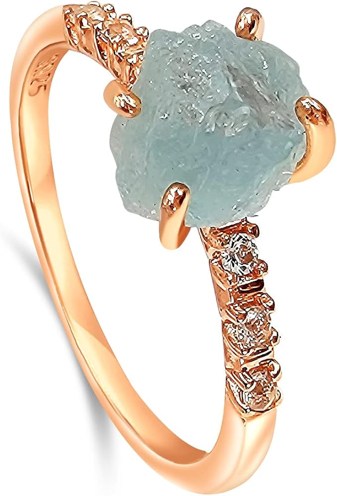 Real Raw Aquamarine Crystal Dainty Ring Rose Gold March Birthstone gift for sister daughter niece Christmas birthday Uniquelan Jewelry (aquamarine, 6)