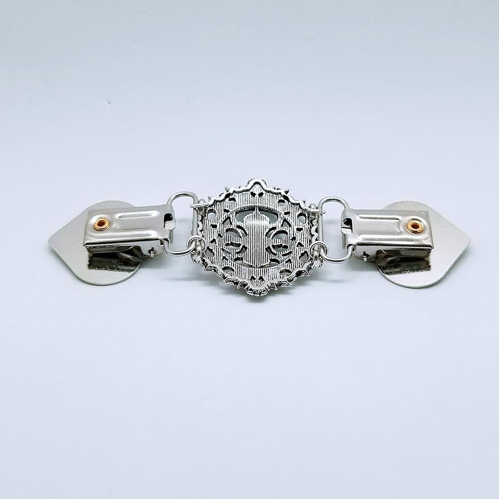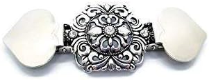 With each of our cardigan clips made by hand, we have concentrated on delicate designs and robust structure. This cardigan clasp is silver in color with dark undertones to provide an elegant and sophisticated look.