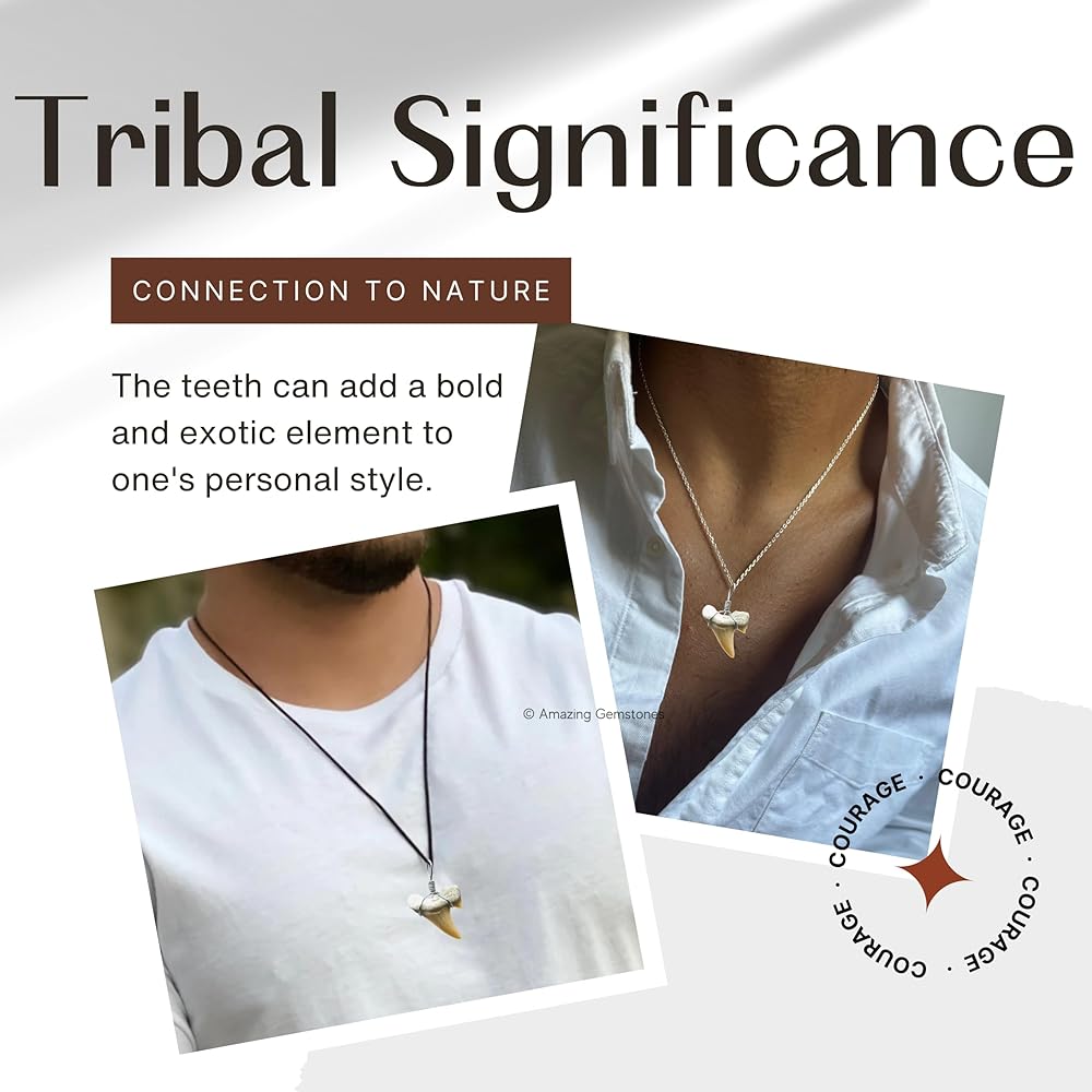 💎 Authentic Shark Tooth Necklace : Our shark tooth necklace for men women is made with real shark teeth. Each tooth has its unique shade and shape, making every piece one of a kind. The sharpness of the sharks teeth is preserved to maintain its fierceness.