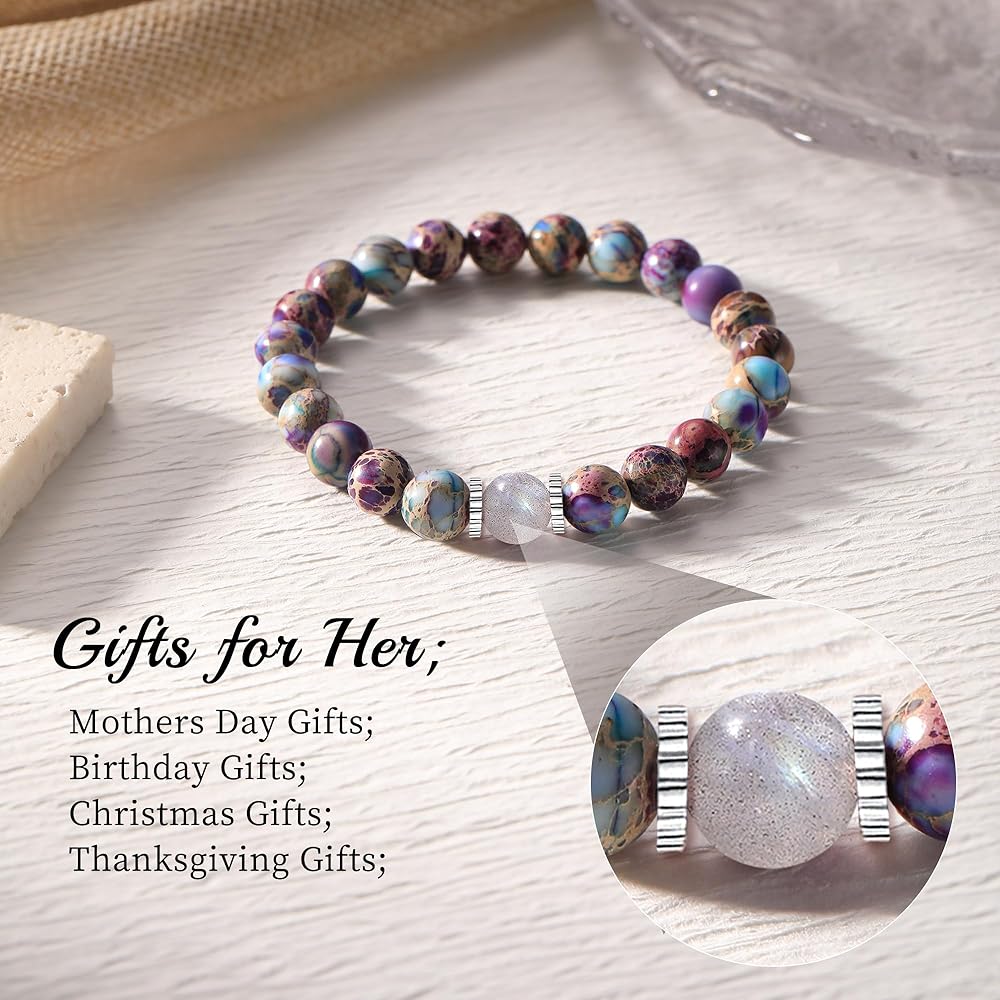 Meaningful Gifts: The healing stone bracelet consists of pink zebra jasper stone and moonstone, both stones have its unique meanings and healing effects. The beaded bracelet brings good luck and better mood to women. Unique healing gifts for her!