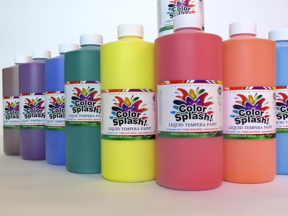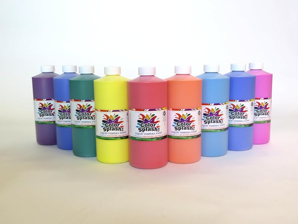 Pearington 25-Shelf Mobile/Wall Mountable Art Drying Rack & S&S Worldwide Color Splash! Liquid Tempera Bulk Paint, Set of 12 in 11 Bright Colors, 32-oz Easy-Pour Bottles, Great for Arts & Crafts