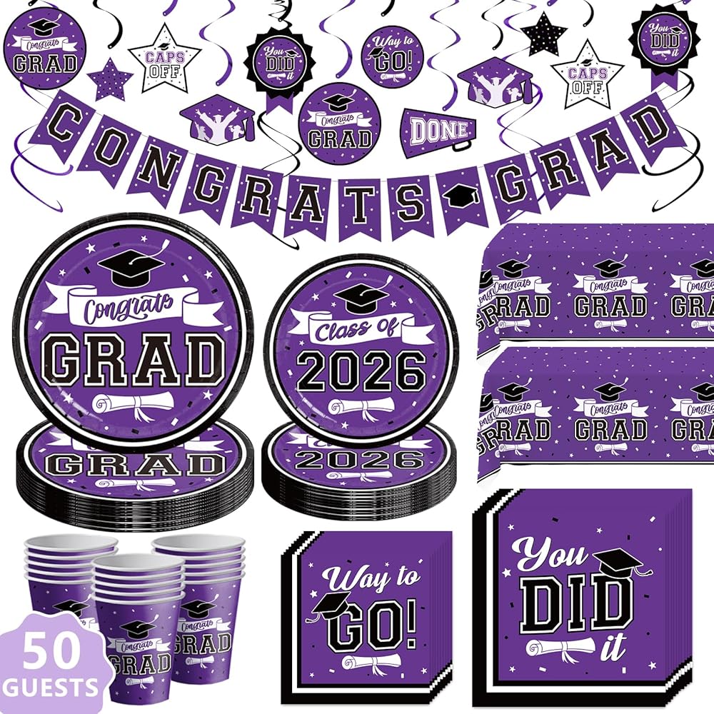 🎉Convenient Graduation Party Supplies: Setting up party tables will be a breeze with enough plates, cups, napkins and tablecloth for 50 guests. Thick paper tableware and sturdy vinyl tablecloth are perfect for serving up party food and making cleaning up easy.