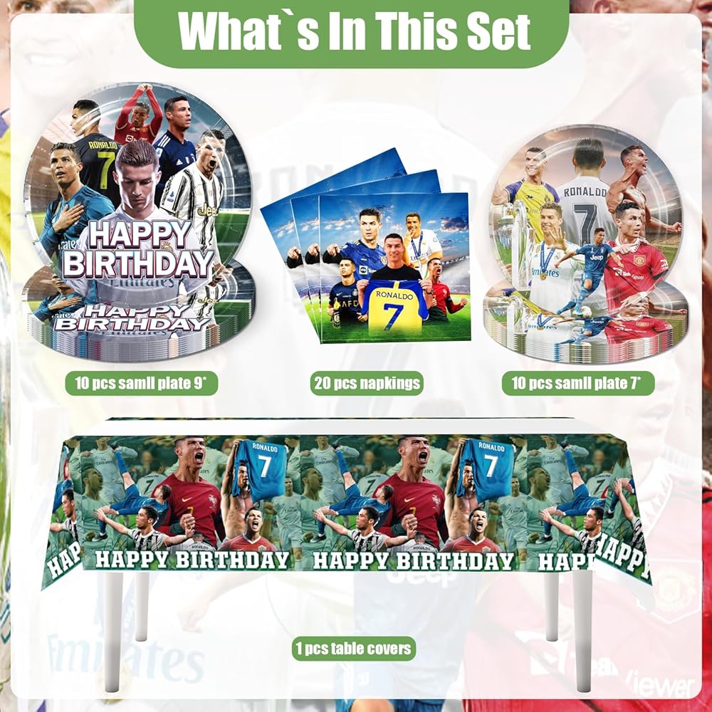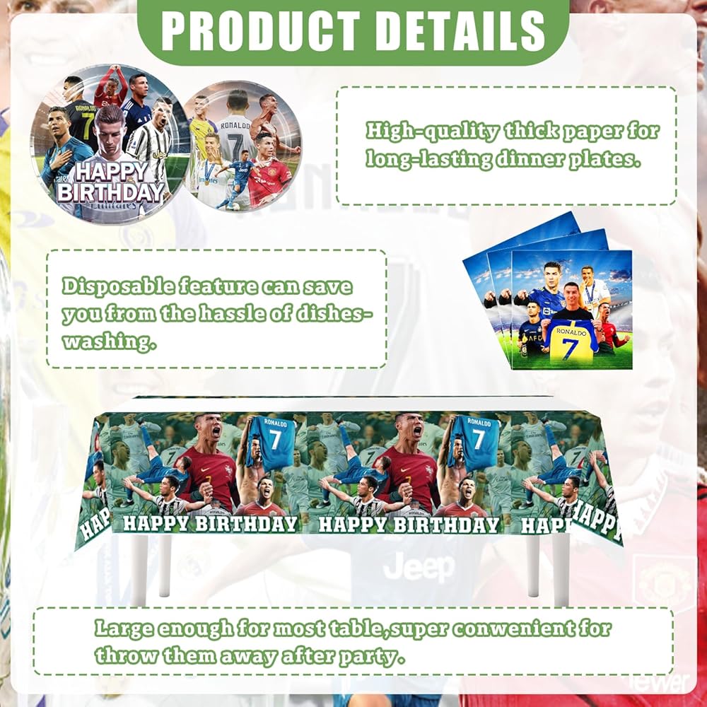 Soccer Birthday Decorations, 20 Pcs Plates 20 Napkins 1 pc Waterproof Tablecloth 43"x71" for Football Soccer Star Party Supplies Party Decorations Paper Tableware For Boys Girls Birthday Party