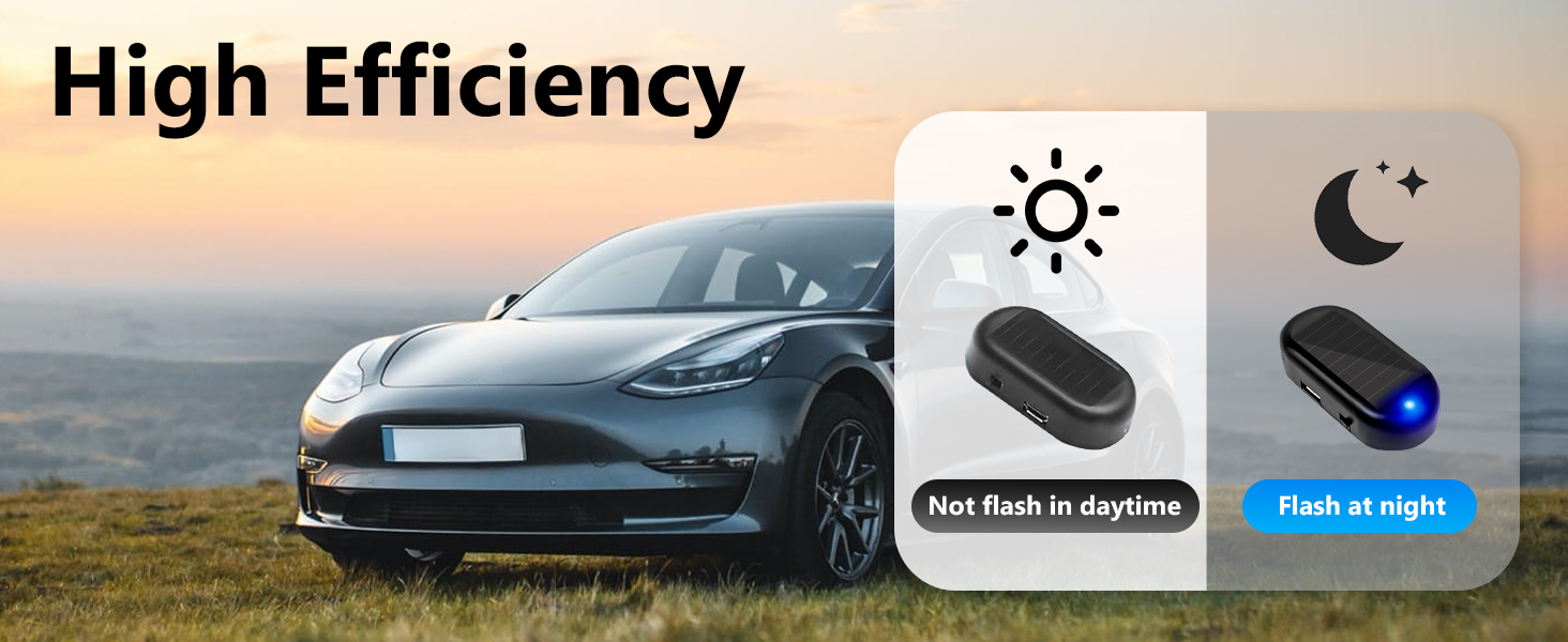 High Efficiency: The fake car alarm will flash when it is dark; Will not flash when the light is bright enough, keeping the item efficient and having a longer lifespan. If you want to shine during the day, you can cover the other end with dark paper.