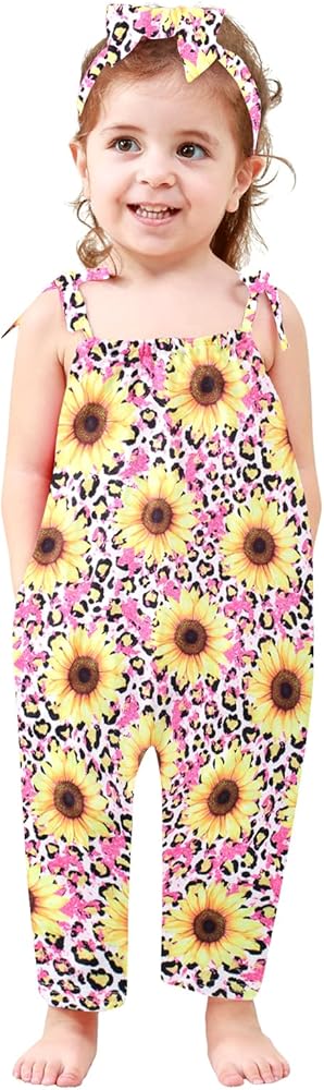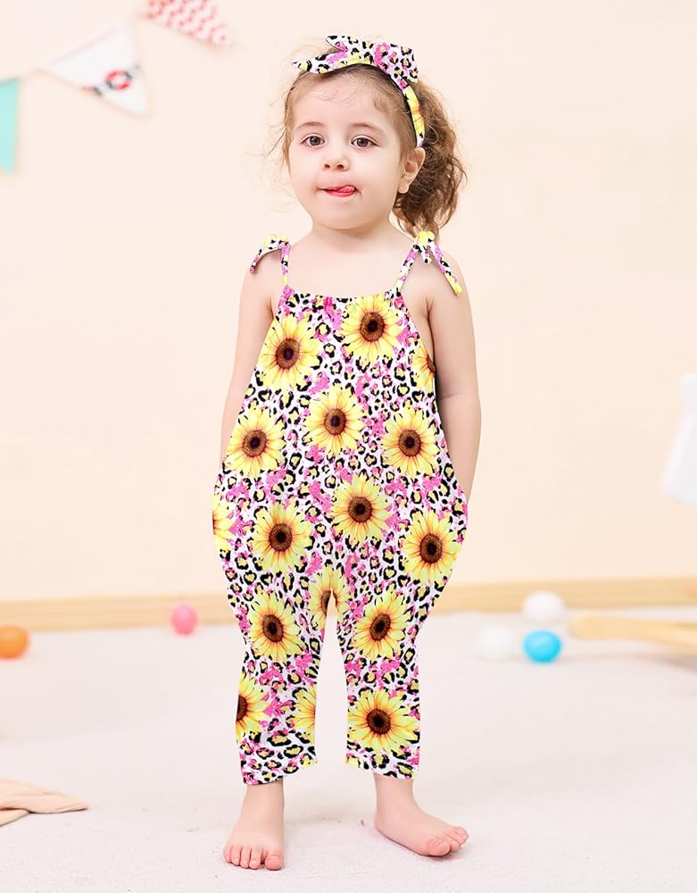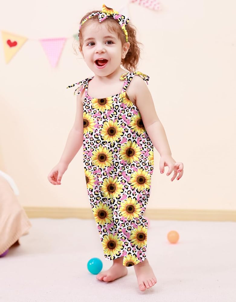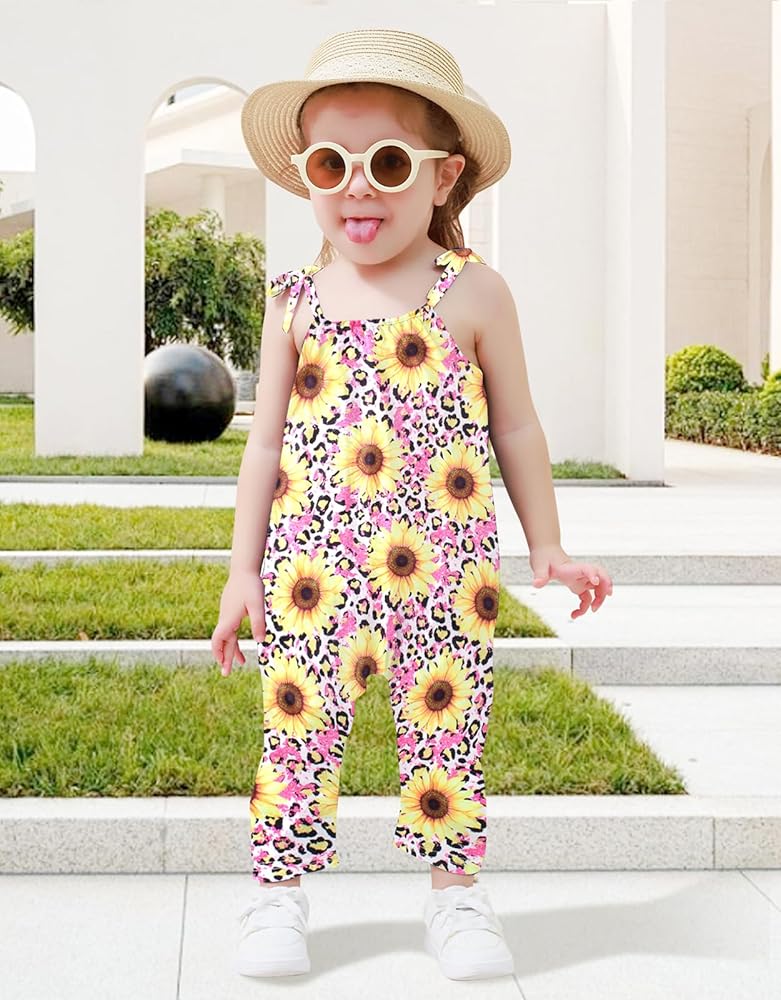 🌻 Pattern: Lindanina classic strap one piece romper has different fashion theme print , can be creating your little girls own style. mermaid, dinosaur, sunflower, independence day style etc cute print, which makes the strap romper looks lively, your little girl will look adorable in it and will get lots of compliments