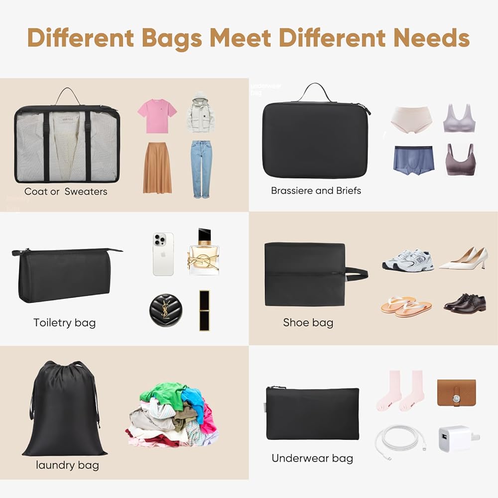 Versatile and Compact: These travel organizer bags are not only ideal for suitcases but also fit perfectly in carry-on bags, backpacks, and duffel bags. Their compact design allows for easy storage when not in use, saving valuable space in your luggage.