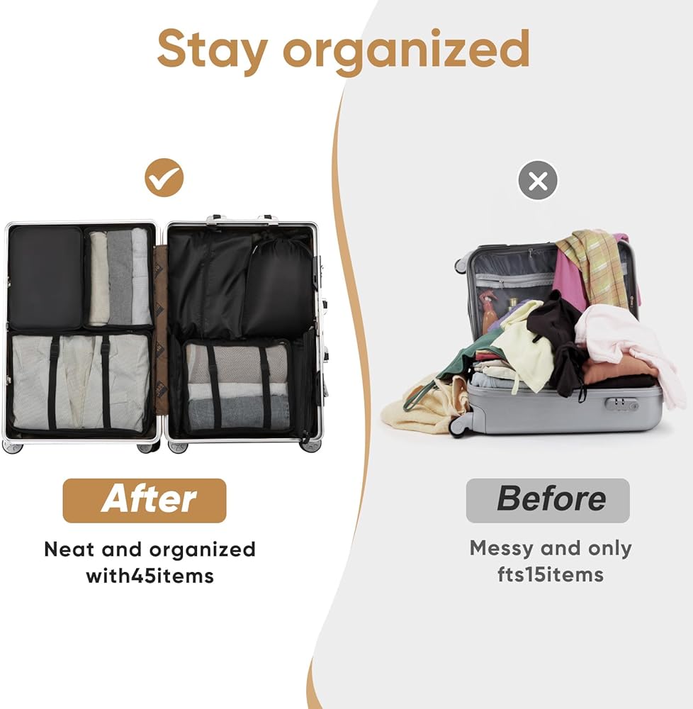 High-Quality Material: Made from durable and lightweight materials, these packing cubes are built to withstand the rigors of travel. The premium fabric ensures that your clothes remain wrinkle-free and protected throughout your journey.