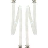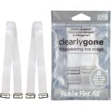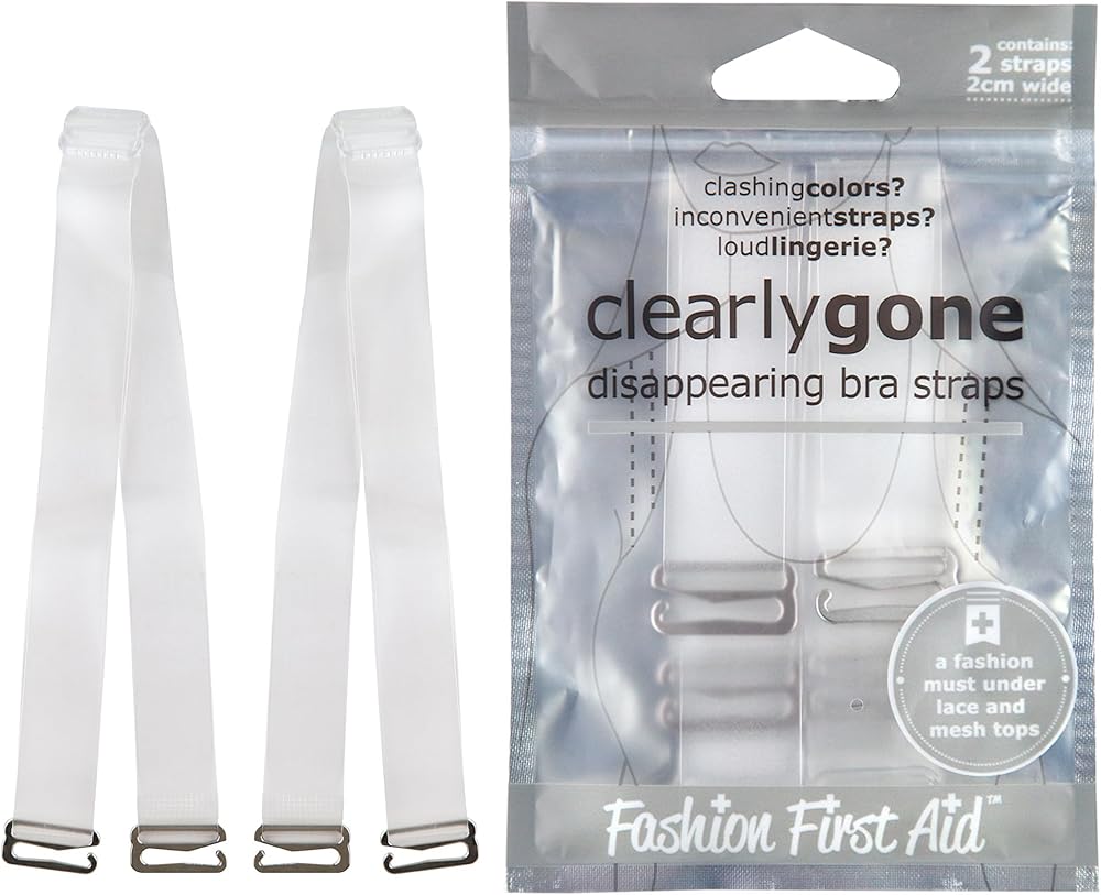 The Solution is Clearly Gone: disappearing bra straps. When your bra straps are playing the part of the extrovert, replace them with a quieter model. Clearly Gone simply hook onto most strapless or convertible bras and are a wide 20 mm (about 0.8") and 42 cm long. These clear bra straps are slightly cloudy, so they don't shine on your skin, and are a wardrobe essential for wear under lace, mesh or sheer tops. The slightly stretchy TPU material tends to slightly yellow over time, which is great news as it helps them become even less visible when wearing them.