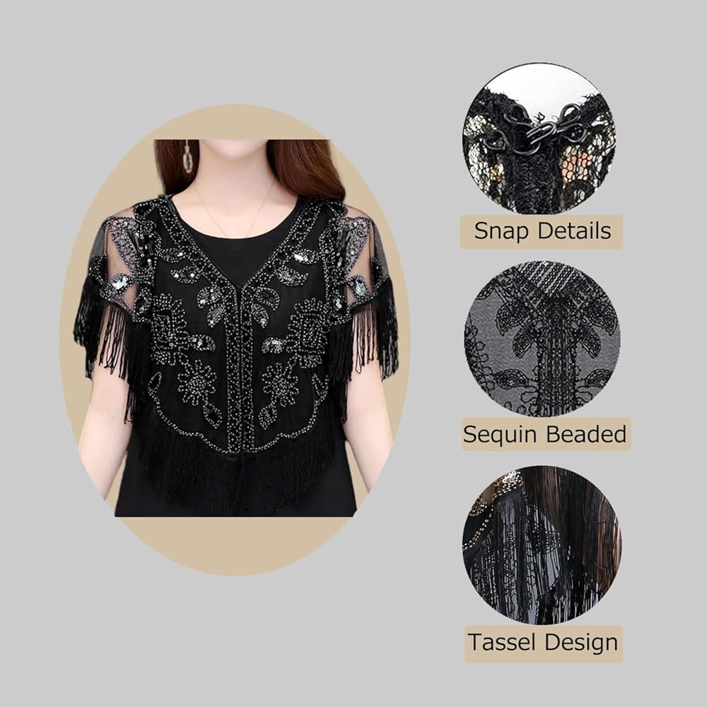 • Retro Charm: Glittering Beads and Embellishments on Semi-Sheer Evening Shawl is the centerpiece of this set. The shawl is made from high-quality polyester fabric and features intricate beading and embellishments that will catch the light and add a touch of glamour to any outfit.