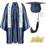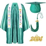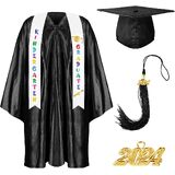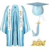 Valuable Combination for Your Kids: this package will provide you with 1 gown, 1 hat, 1 sash ,1 tassel for graduation and 1 charm in the shape of 2024, 5 pieces in total, the enough quantity and nice combination will meet your kids' clothing matching needs on their graduation day. If you have any questions after receiving the product, please contact us as soon as possible