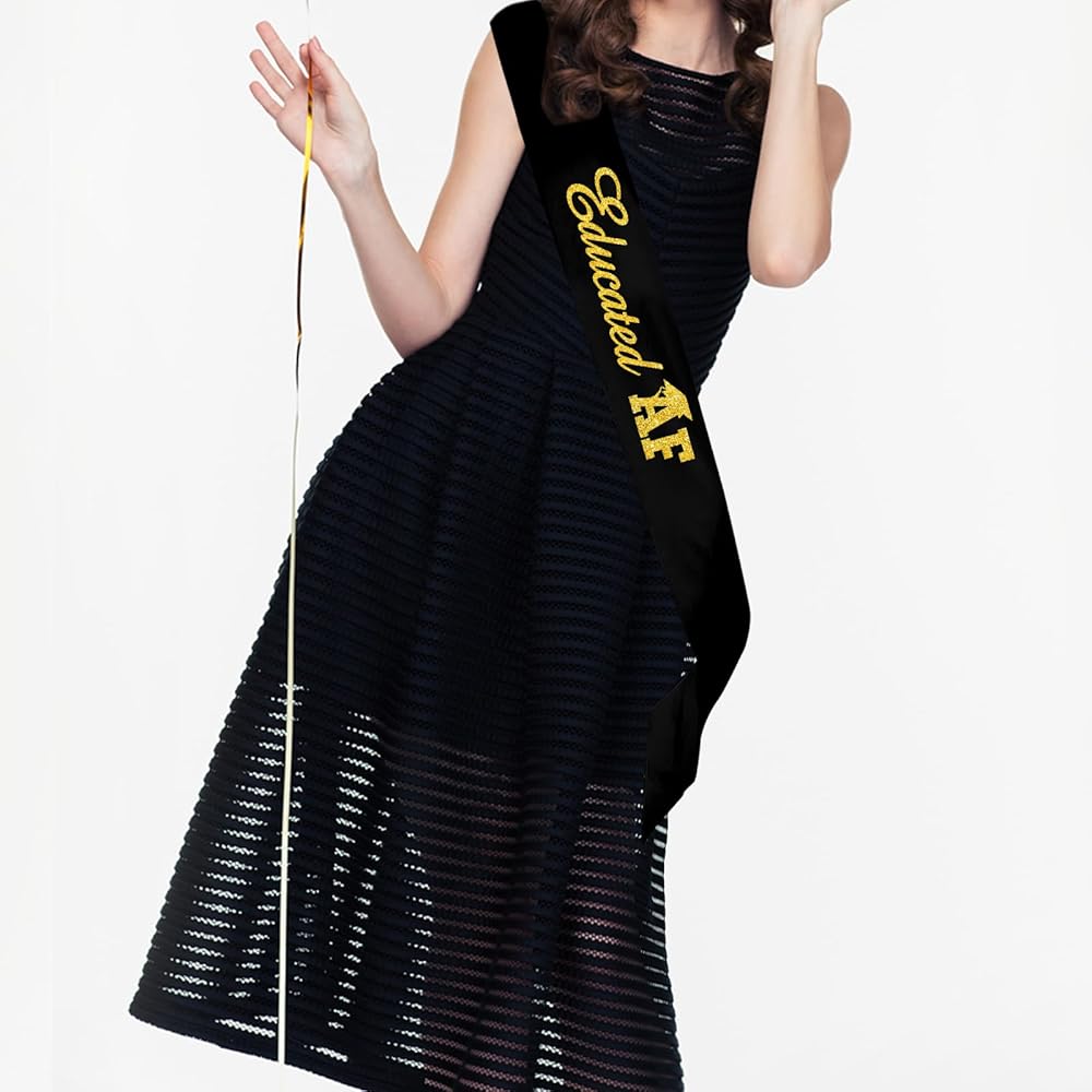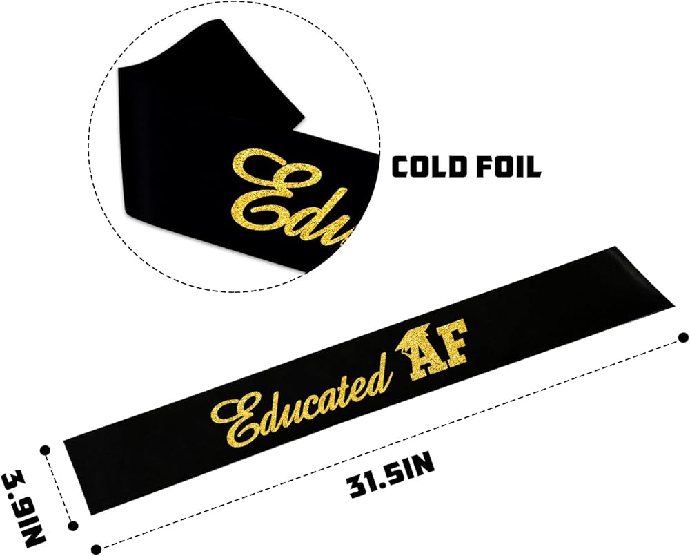 Black Educated AF Satin Sash with Gold Glitter Letters - Class of 2026 Satin Sash - Celebration Graduation Decorations for Senior High School College - 2026 Graduation Gift