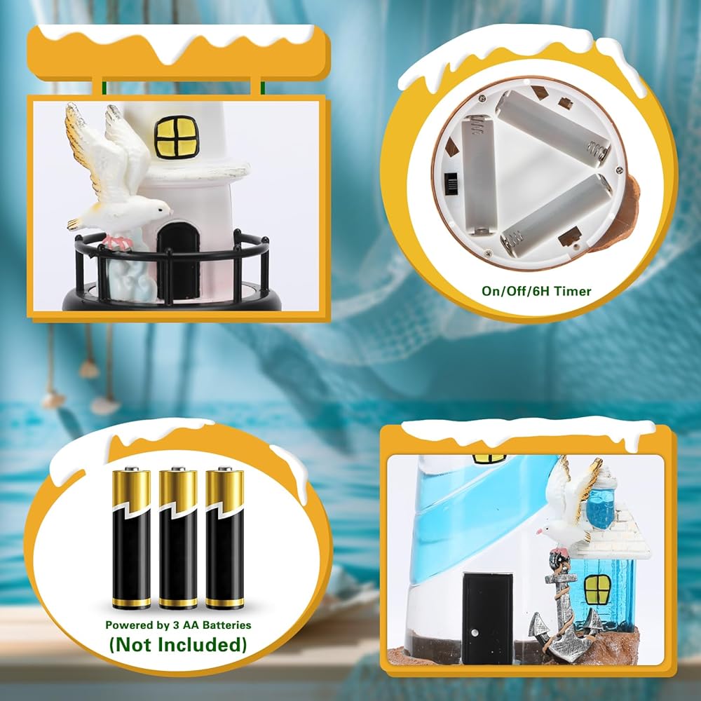Ocean Nautical Themed: Embodying the captivating appeal of the ocean, this Lighthouse Snow Globe decor brings an invigorating nautical theme to your environment. It transports you to the tranquil setting of a lighthouse by the sea, offering more than just a decoration.