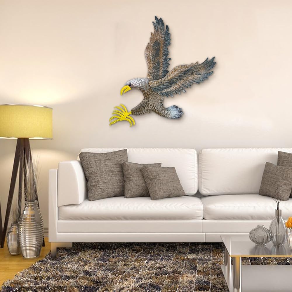 🍡Eagle Wall Decor:This metal wall art vividly depicts the image of eagle, with brown and gray feathers, as well as golden beaks and claws, depicting the shape of an eagle spreading its wings to hunt, bringing a wild and artistic atmosphere to your home.