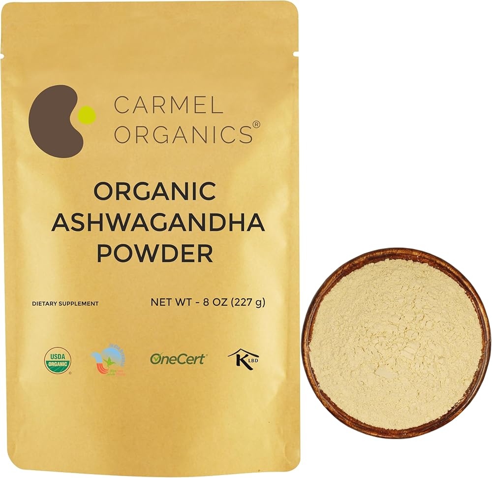 CARMEL ORGANICS Organic Ashwagandha Root Powder (8 Oz or 227g/0.5 Lbs) USDA Certified. Lab Tested, Non GMO & Gluten Free | Withania Somnifera from India