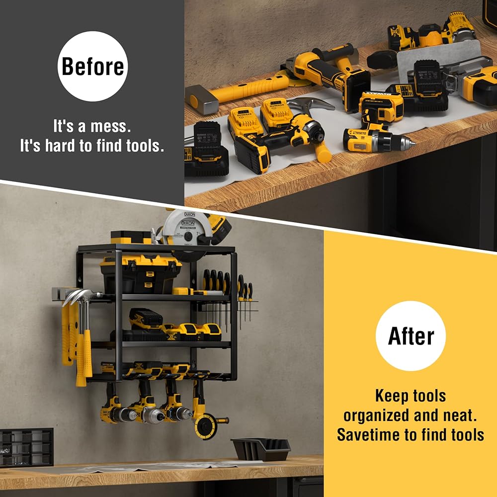 【SPECIAL GIFT】: YYR is committed to providing well-made storage racks. If you're looking for a Father's Day, Christmas or birthday gift, our electric tool holder is a great choice and I'm sure he'll be happy with it.