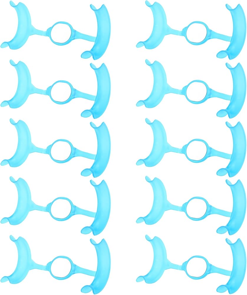 Dental Cheek Retractor Mouth Opener M Shape Autoclavable with Mirror for Teeth Whitening Mouthpiece Dentist Tools(10Pcs Blue)