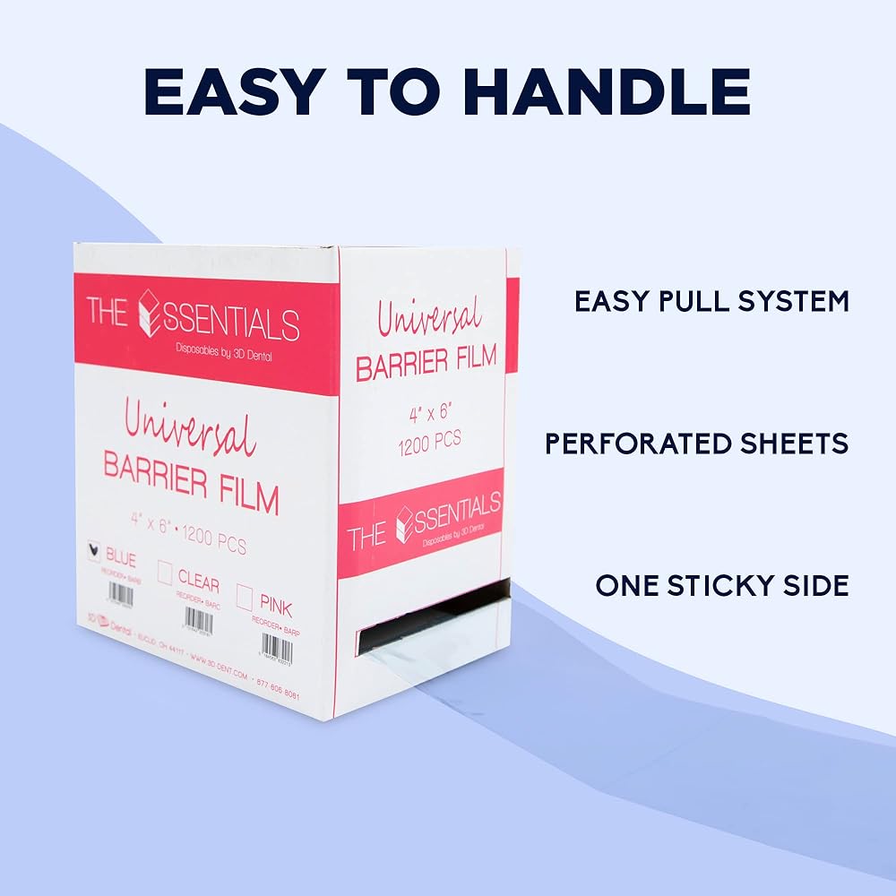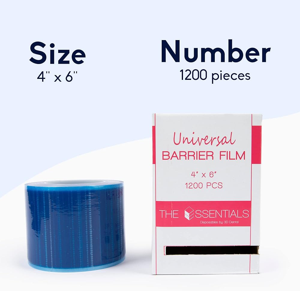 The Essentials Barrier Film Roll with Dispenser Box, 4"x 6" Perforated Sheets Adhesive Barrier Film for Dental, Medical & Tattoo Purposes, 1200 pcs, Blue