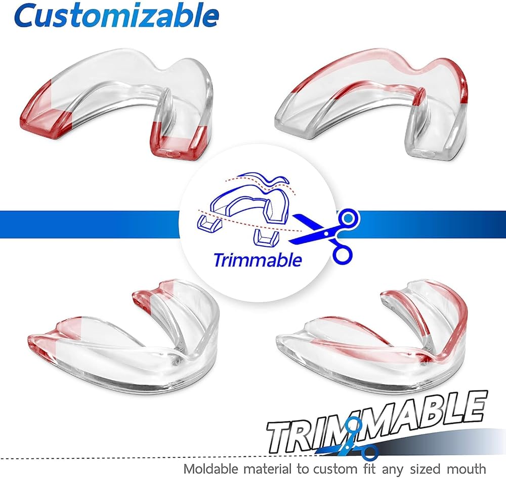 Our high quality professional mouthguard is an excellent dental appliance. For a better prevention, our mouthguard is made from soft thermo plastic premium medical grade BPA Free and Phthalate Free material. It's comfortable for you to use it every day and night. Our guard is the best solution for teeth grinders. It protects both your upper (top) and lower (bottom) teeth. In addition, it can be used for a whitening tray in teeth whitening treatments. With the slim (thin) design, our mouth guards provide you with comfort when wearing it.