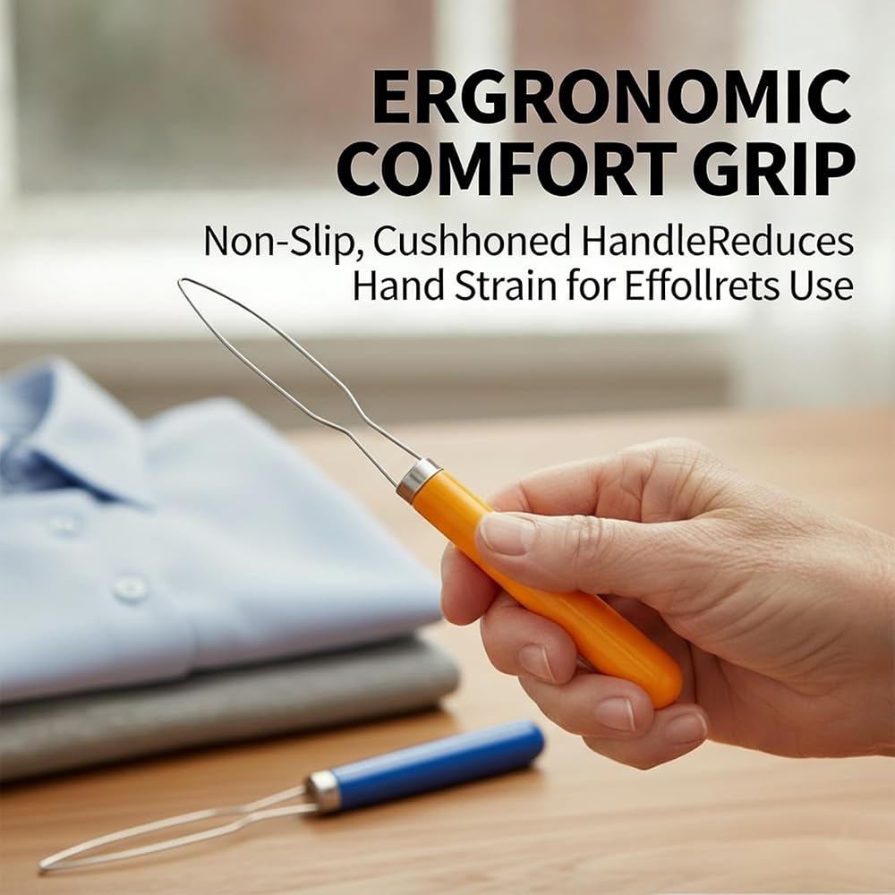 【Professional Design】Easily sliding through small buttonholes, the metal loop of this sewing accessory is smooth and will not snag the fabric or buttonhole threads. The metal loop narrows at the tip to lock the button in place, making pulling it through the buttonhole easier.