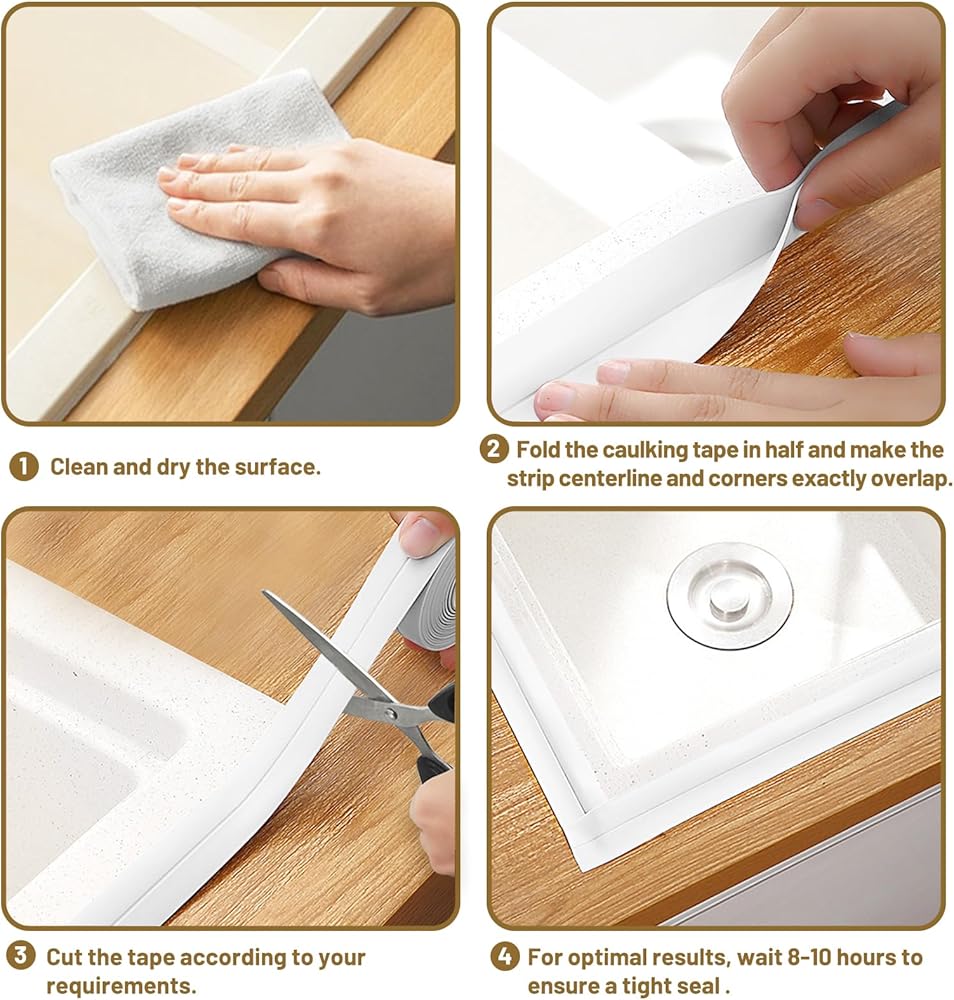 【Tips】: Sealant tape shower sealant,before installing, please clean the area and keep it dry. If it is used in a low temperature place, self-adhesive caulking tape can be heated with a hair dryer and used after the tape softens.