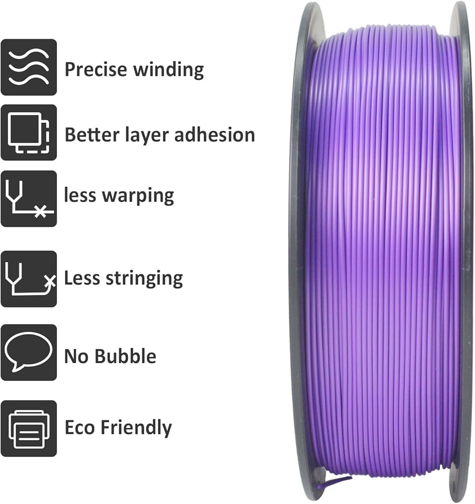 【Silky Shiny Color】The special color of PLA Silk Filament brings arts & crafts and 3D Projects Smooth Shiny Silver Surface which definitely gives eye-catching, glossy prints.It's very suitable to print decoration or gift for all kinds of festival and cosplay.