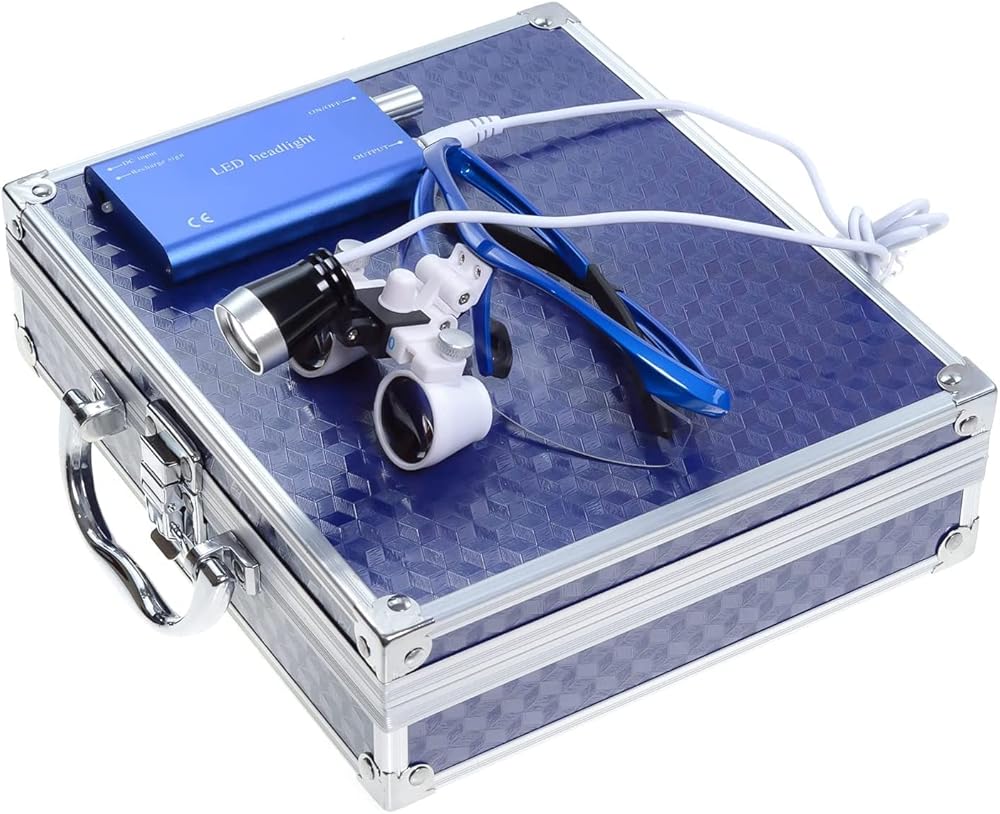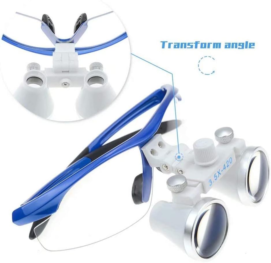 Dental Surgical Binocular Loupes 3.5x420mm Dental Medical Binocular Loupes with Head Light Lamp (Blue)