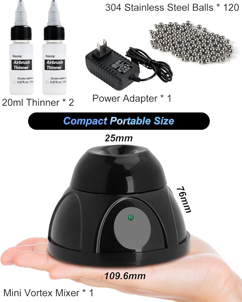Powerful mixing capability: Our mixer deliver strong performance. With a maximum speed of 7000 RPM, they provide powerful stirring action. In just seconds, they thoroughly mix liquids in 50ml containers. Steel balls and thinner are crucial in achieving optimal results. Steel balls ensure effective liquid blending, while the thinner dilutes pigments to the desired concentration.