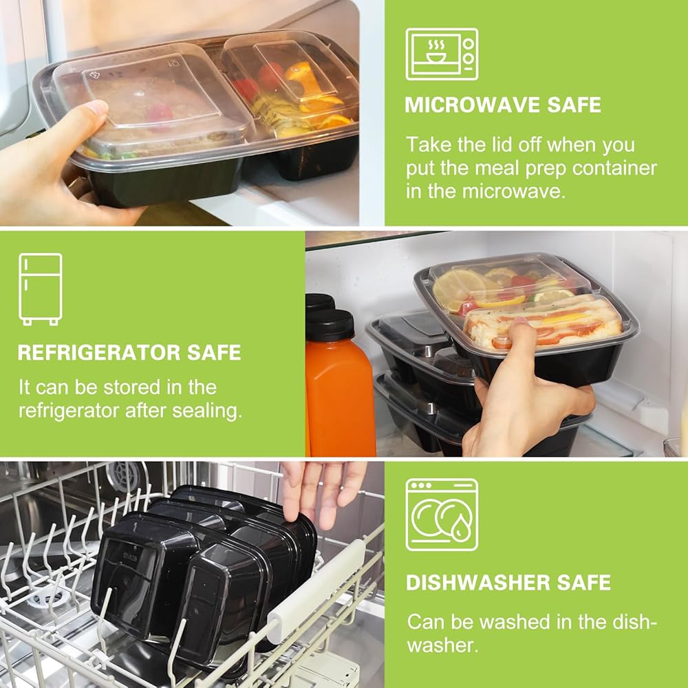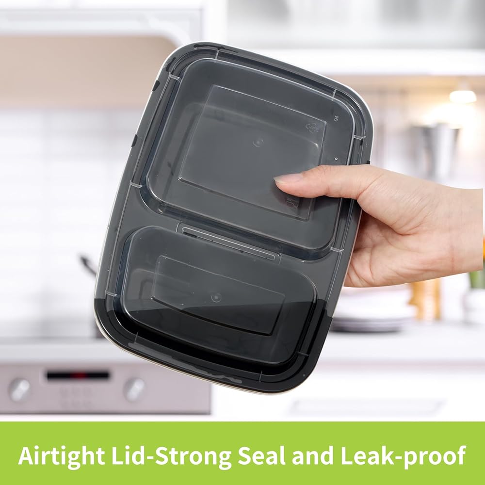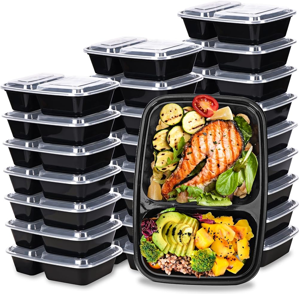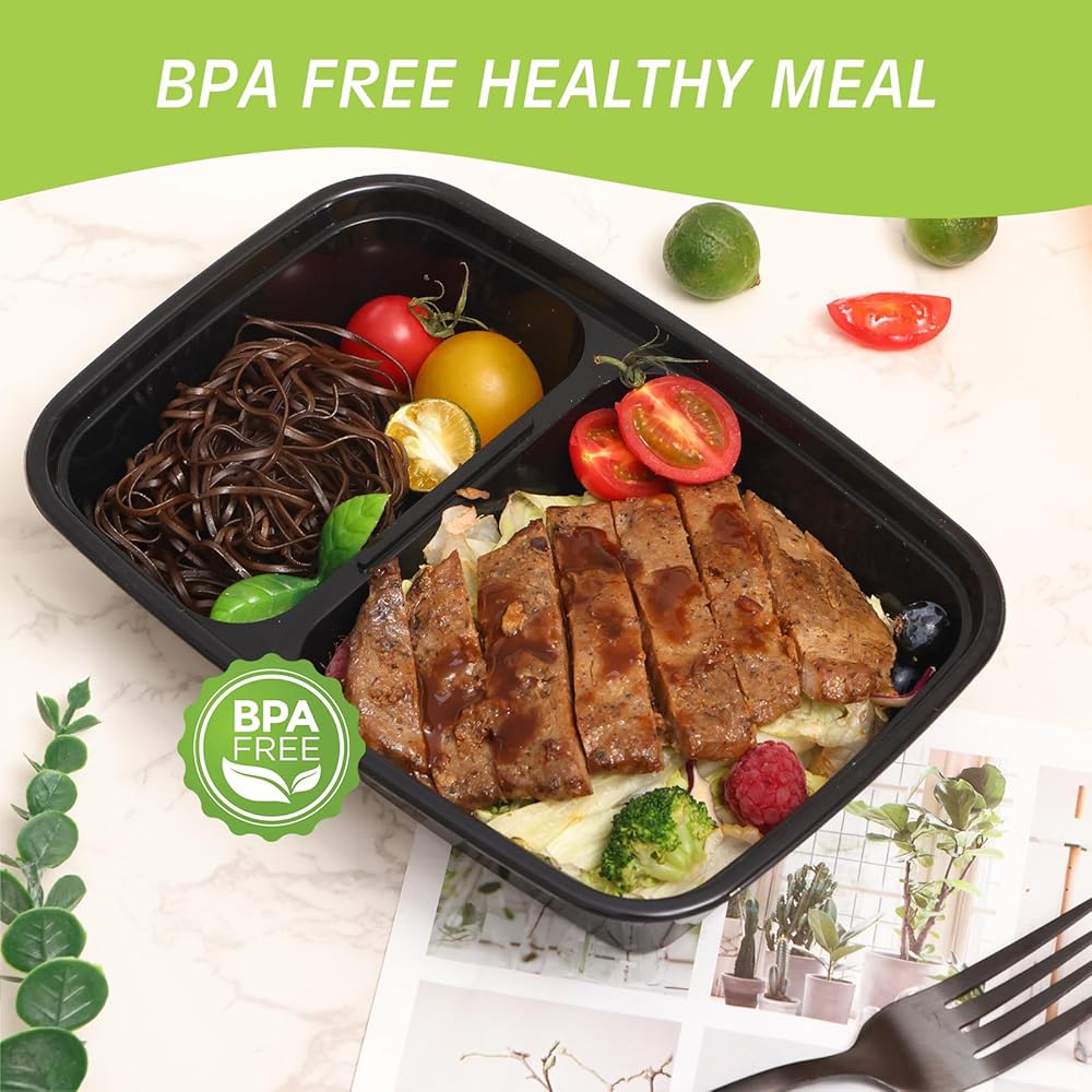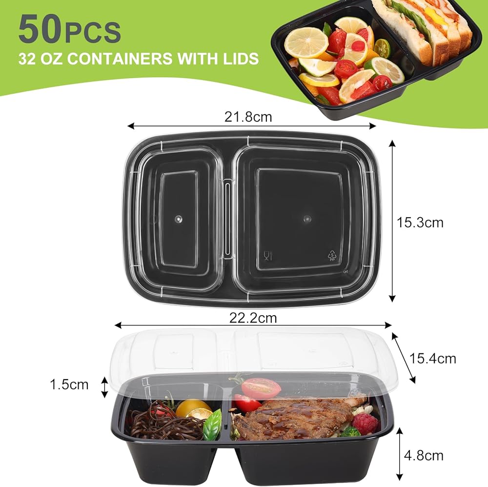 Great Food Storage Containers: Package includes 50 packs 32oz 2 compartment meal prep containers. The leak proof lids will tightly seal the food containers for meal prepping, preventing any annoying leaks or spills in your bag or freezer.
