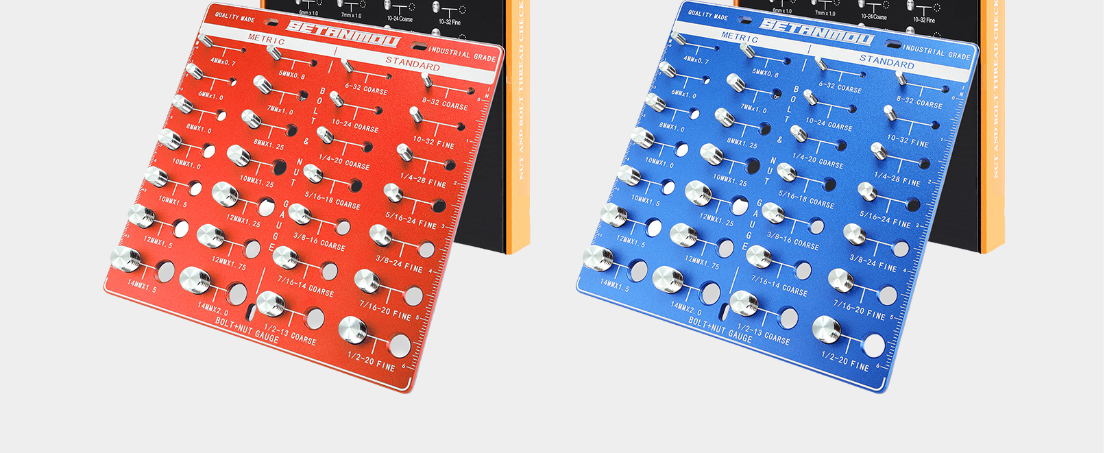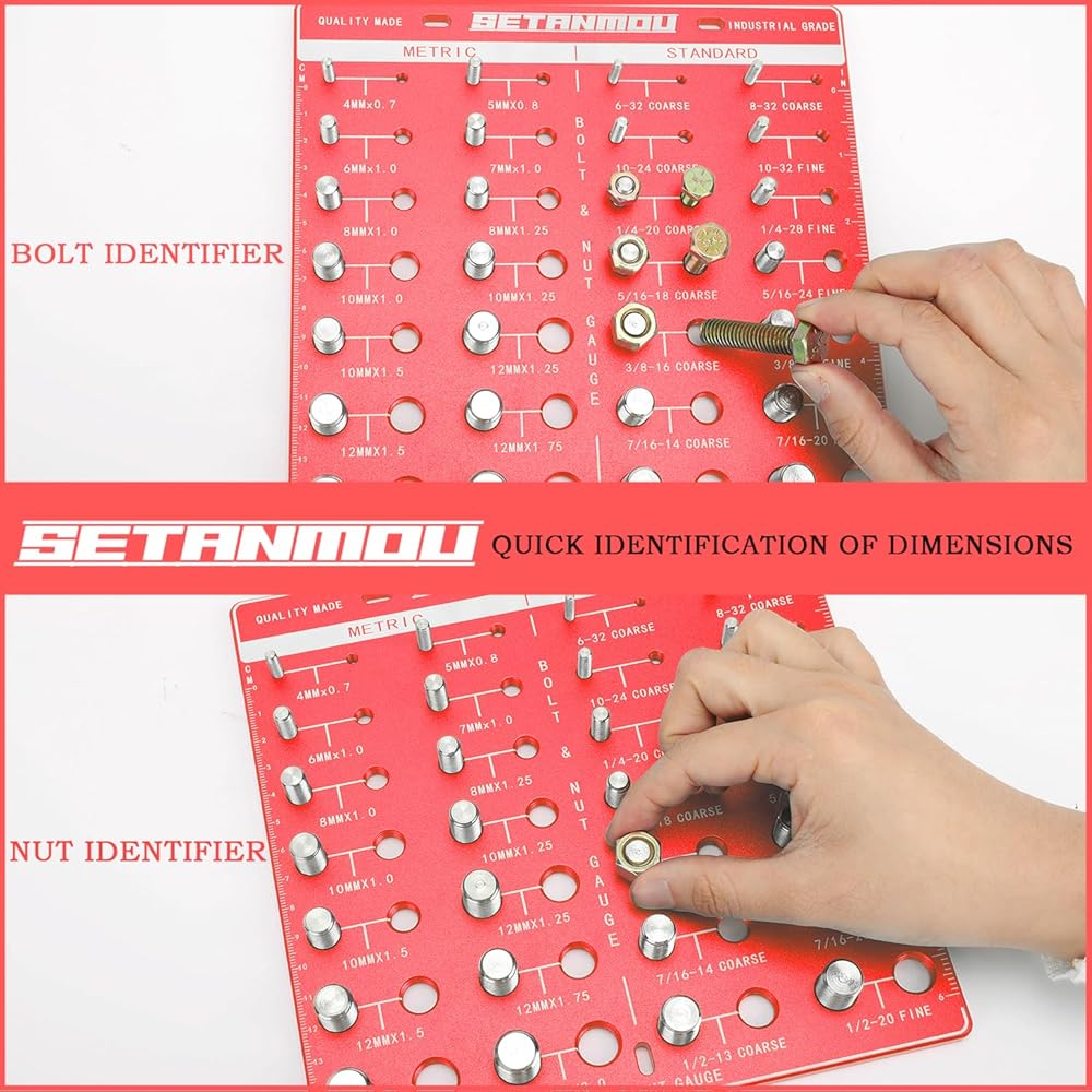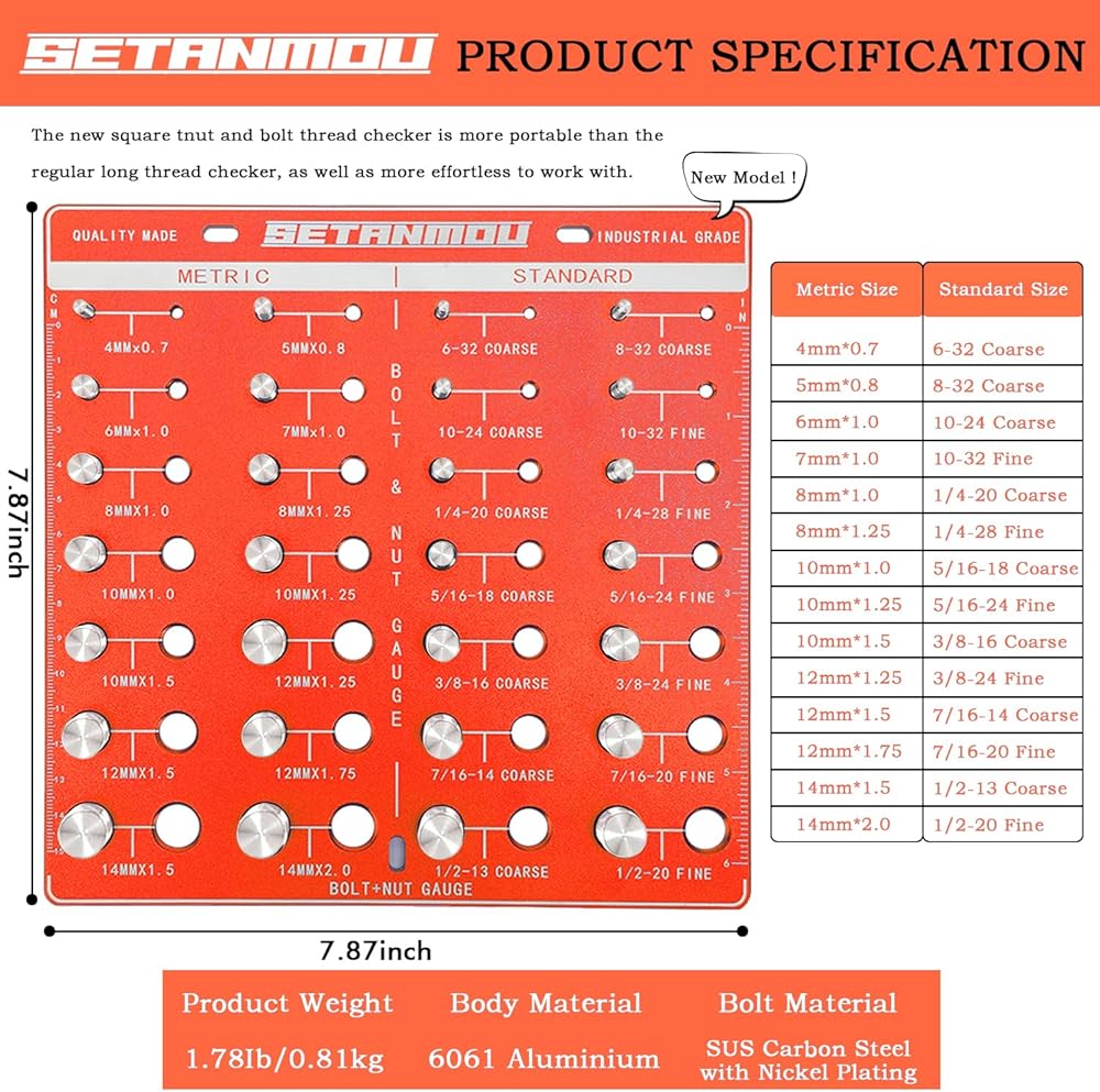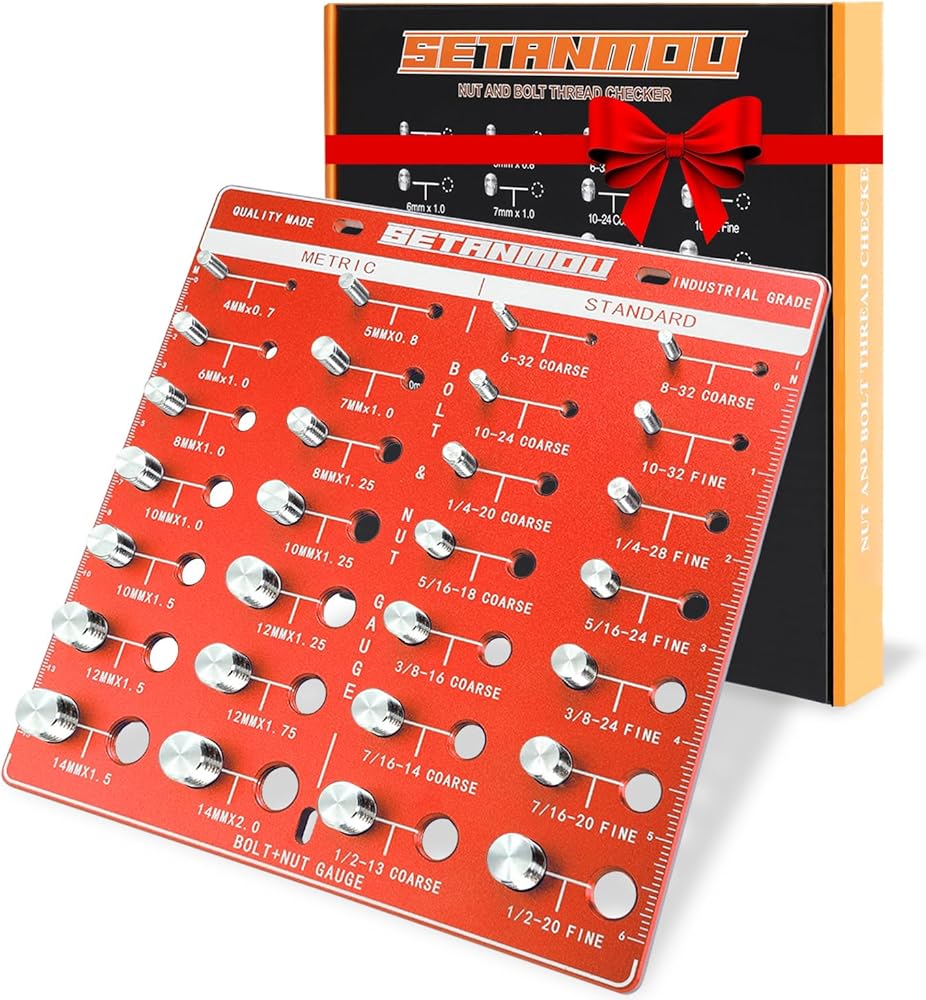 Thread Checker - 28 Bolt and Nut Identifiers, Bolt Sizes and Thread Gauges, Square Design Gift Box Packaging, 14 Metric and 14 Standard Thread Sizes and Thread Gauges