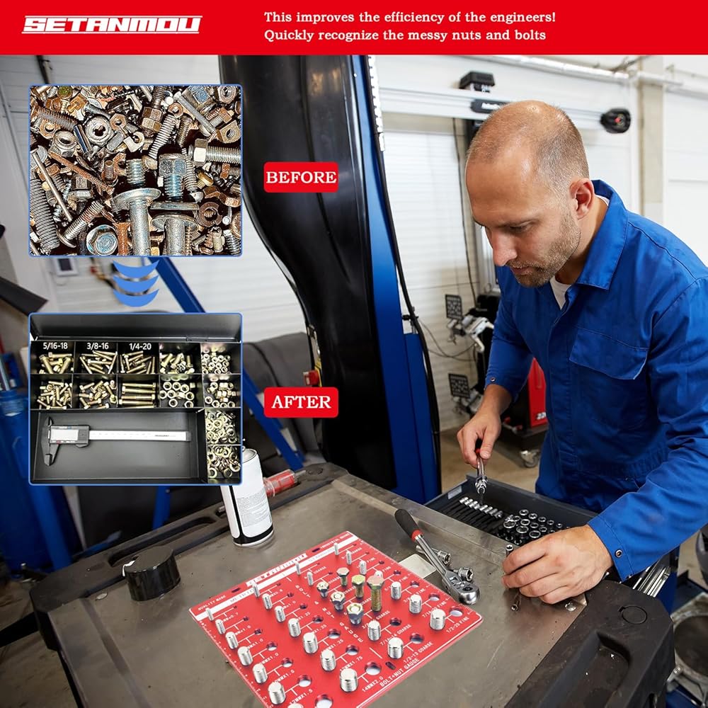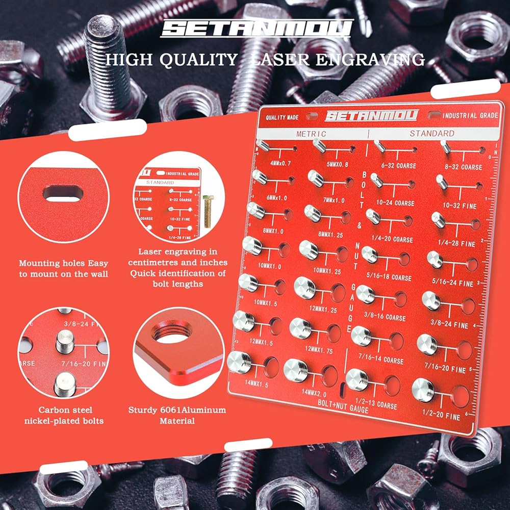 ✅【Excellent Craftsmanship and Versatile Versatility】Each bolt of the bolt identifier board is made of durable carbon steel to ensure high precision machining in accordance with the Go & No Go Class 2B ANSI standard for bolt and thread measurement. With its wide range of applications, it can be effortlessly mounted on a wall or toolbox, making it an indispensable tool for professionals and DIY enthusiasts.