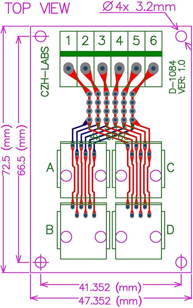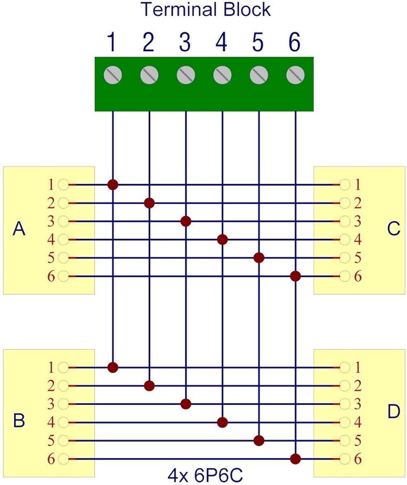 DIN Rail Mount RJ11/RJ12 6P6C 4-Way Buss Board Interface Module.