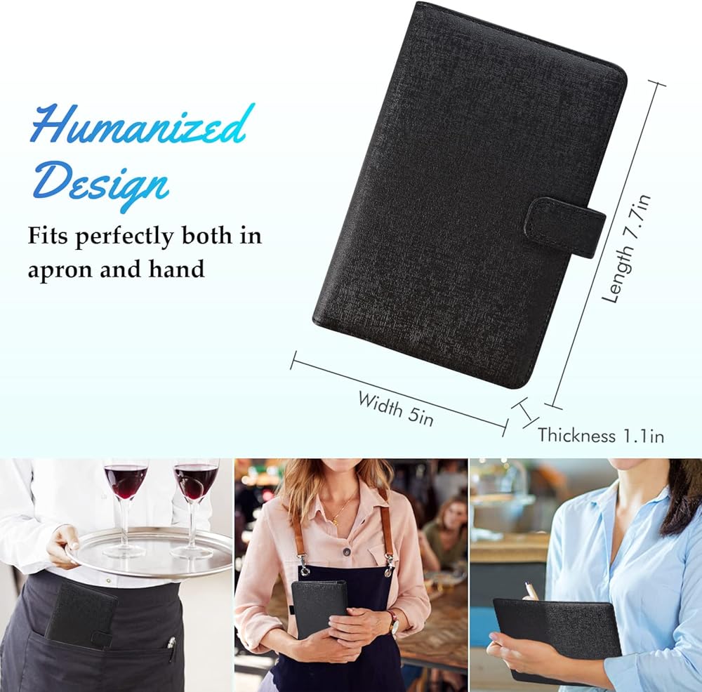 ⭐MAGNETIC CLOSURE: If you have ever lost cash, receipts, or had a credit card slip out of your waitress accessories book, our server book for waitress with zipper is perfect for you! Each server book features strong magnetic closure to keep all your work items organized and safely, say goodbye to frantically searching for the lost items.