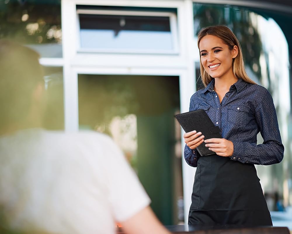 ⭐MULTIPLE POCKETS: Waiters and waitresses need a well-made check presenters to keep lots of items on hand such as a pen, guest checkbook, special menu, business cards, credit card, receipt, and money. Our waitress notepad has multiple pockets with zippers that can hold all your work items organized and safely so you can go around your work with ease. The serving book for waitresses has a writing surface and a pen holder for effective order taking.