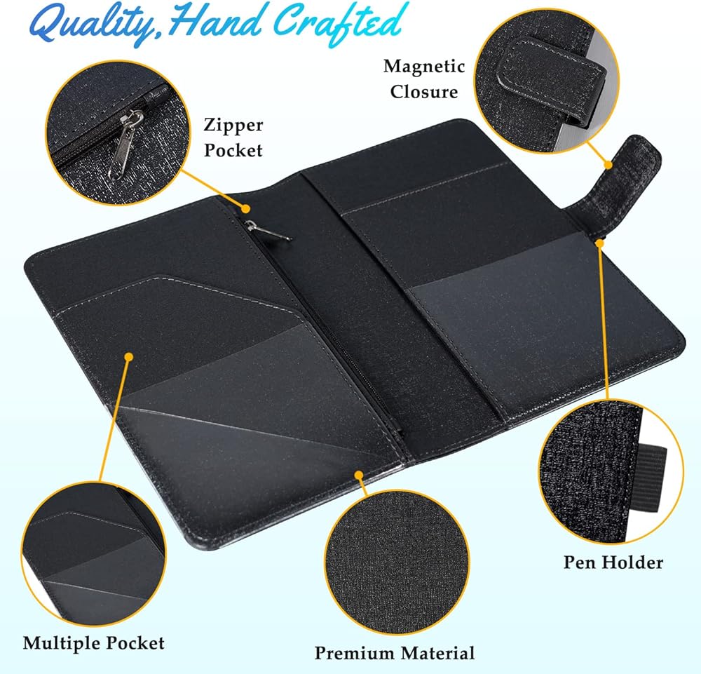 ⭐PREMIUM MATERIALS: Our server book with zipper has been crafted to remain beautiful and functional from the highest quality materials. Each waiter book is made from quality PU leather that has a protective clear coating layer which makes it durable, wear-resistant, and naturally beautiful. The coating makes server note pads strong and easy to clean accidental oil and wine spills. All you need is a clean cloth to wipe the money book organizer.