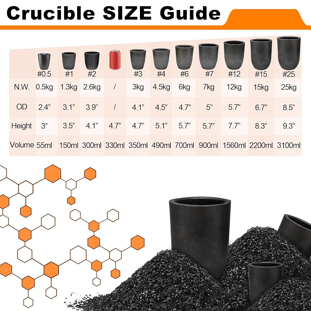 Various sizes: Choose from our selection of 9 different sizes to meet your specific needs. Our graphite crucibles are consumables, so be sure to replace them as needed for optimal performance.